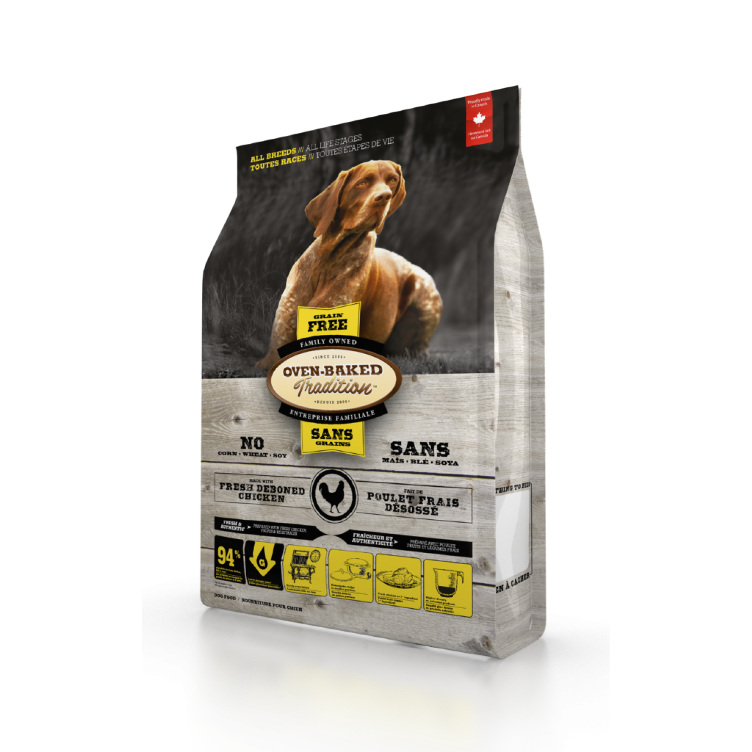 Oven-Baked Tradition повністю збалансований беззерновий сухий корм для собак зі свіжого м’яса курятини.