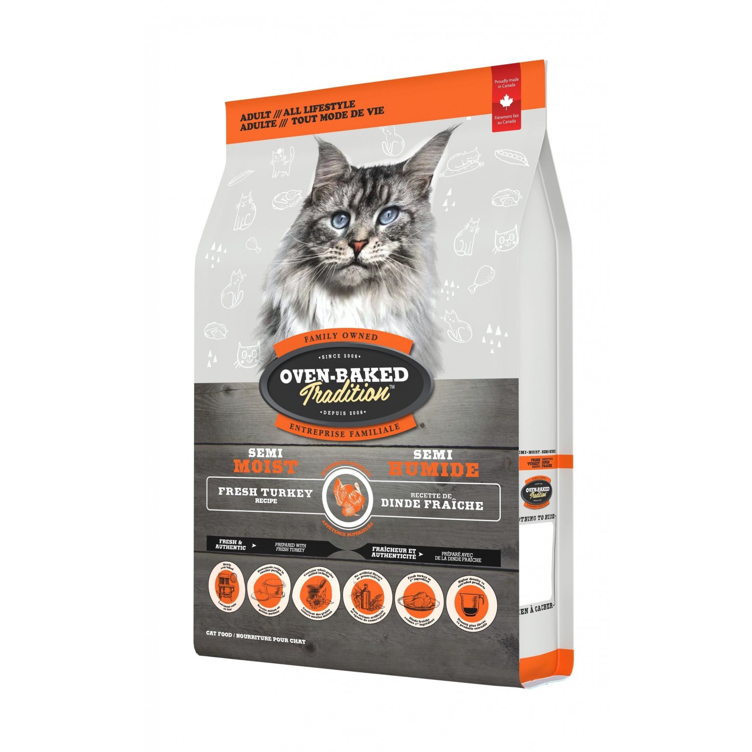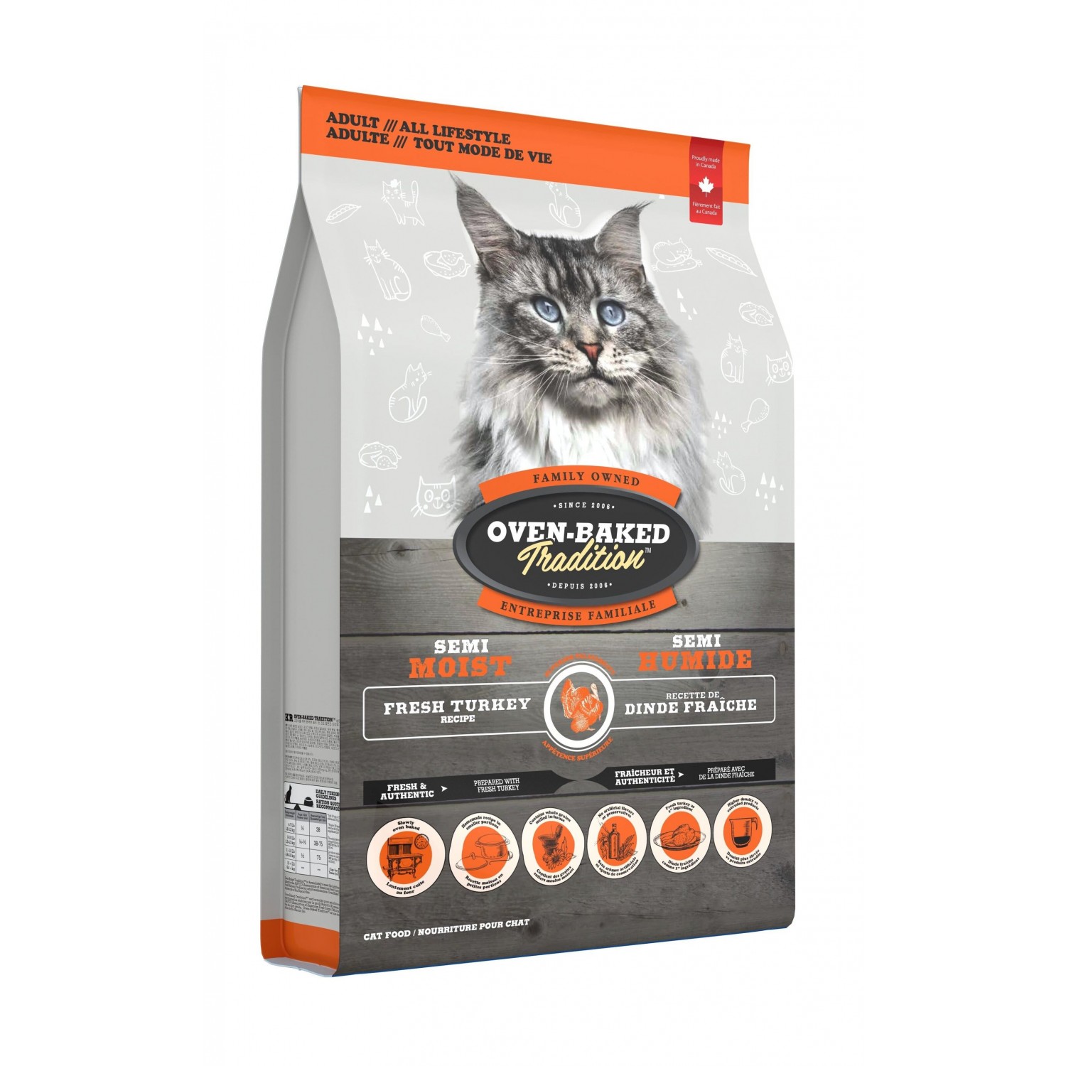 Oven-Baked Tradition Повністю збалансований напіввологий корм для котів з індичкою.