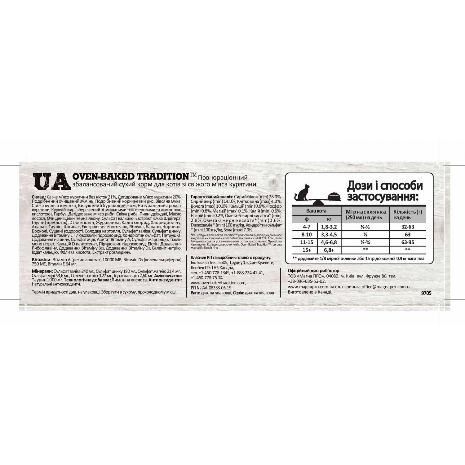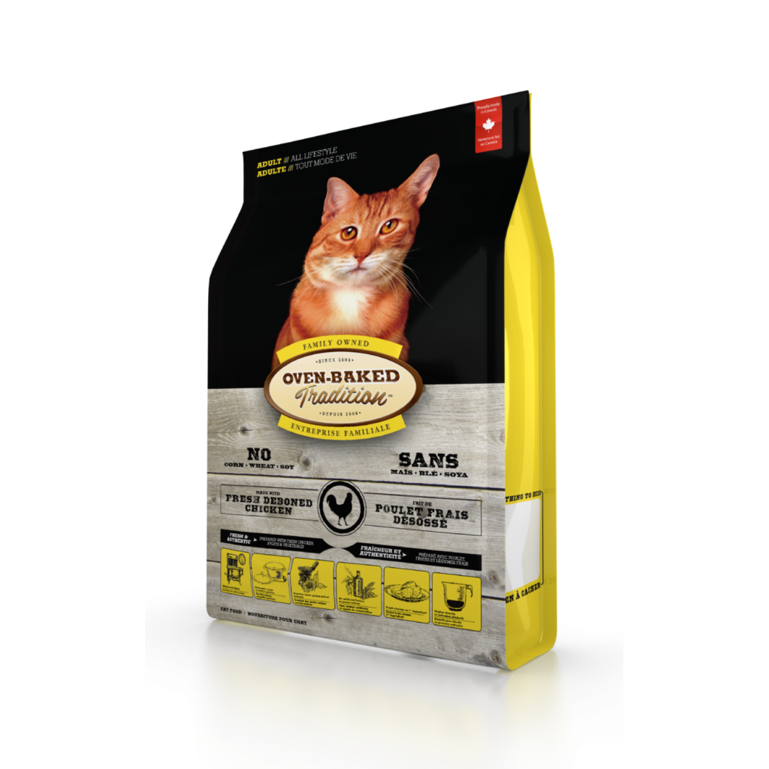 Oven-Baked Tradition повністю збалансований сухий корм для котів зі свіжого м’яса курятини.