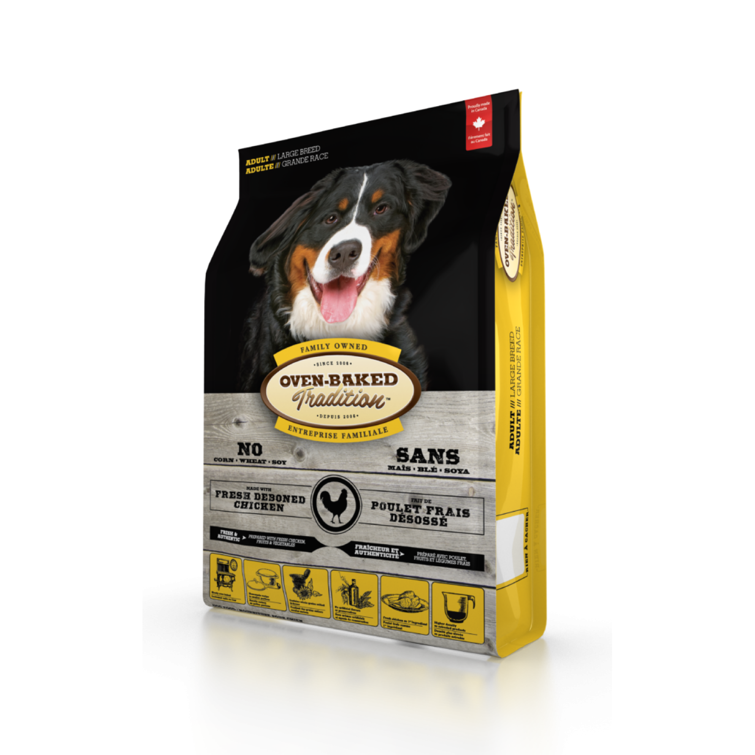 Oven-Baked Tradition повністю збалансований сухий корм для собак великих порід зі свіжого м’яса курятини.