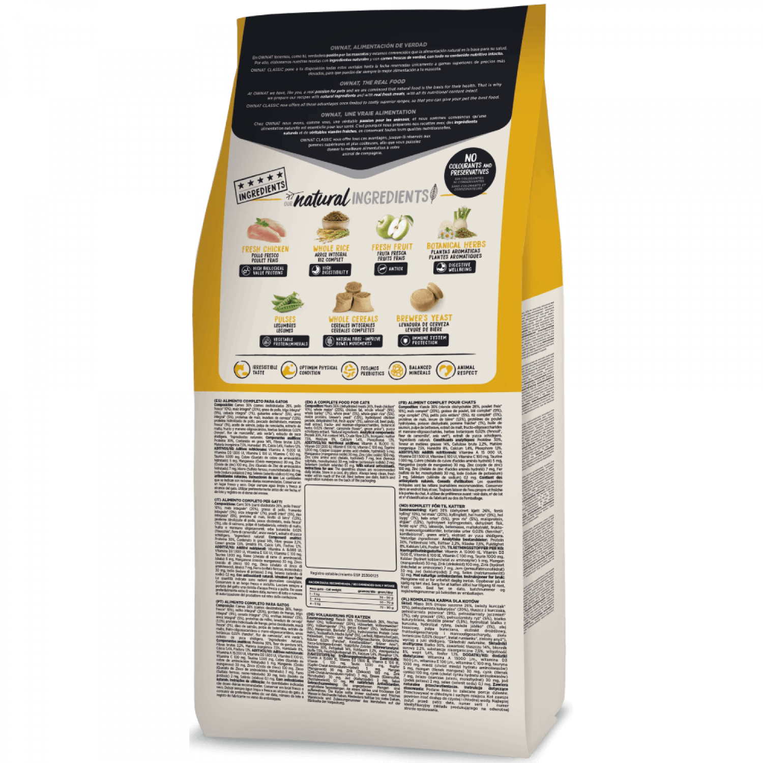 Сухий корм для котів Ownat Classic Daily Care - це повнораціонний корм, виготовлений з натуральних інгредієнтів, які дбають про здоров'я дорослих котів і задовольняють харчові потреби улюбленця, незалежно від його породи або розміру. Підходить для котів, які постійно живуть у приміщенні, а також для тих, які іноді виходять на вулицю.
