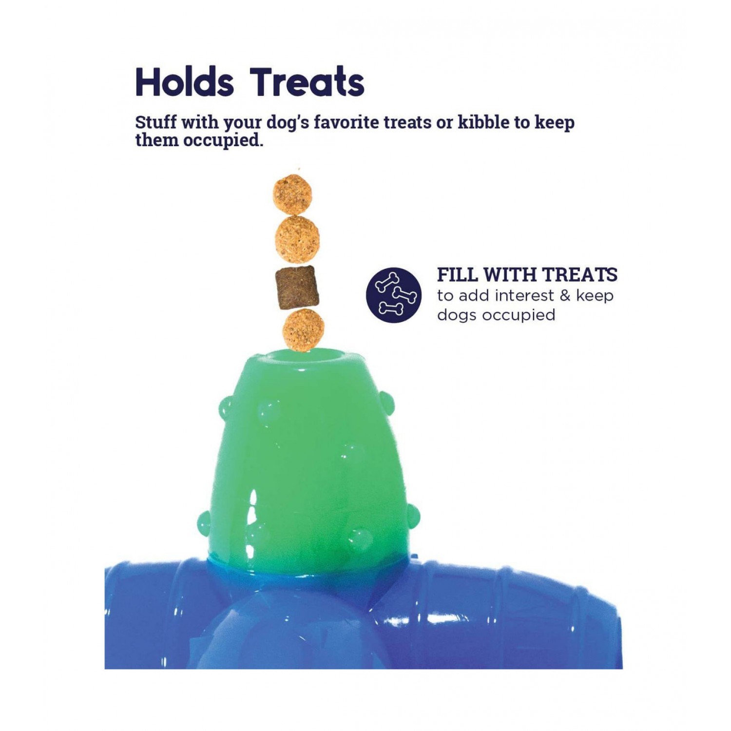 Жувальна пружна іграшка з отворами для ласощів. Допомагає урізноманітнити дозвілля собаки та забезпечити йому додаткову гігієну ротової порожнини.