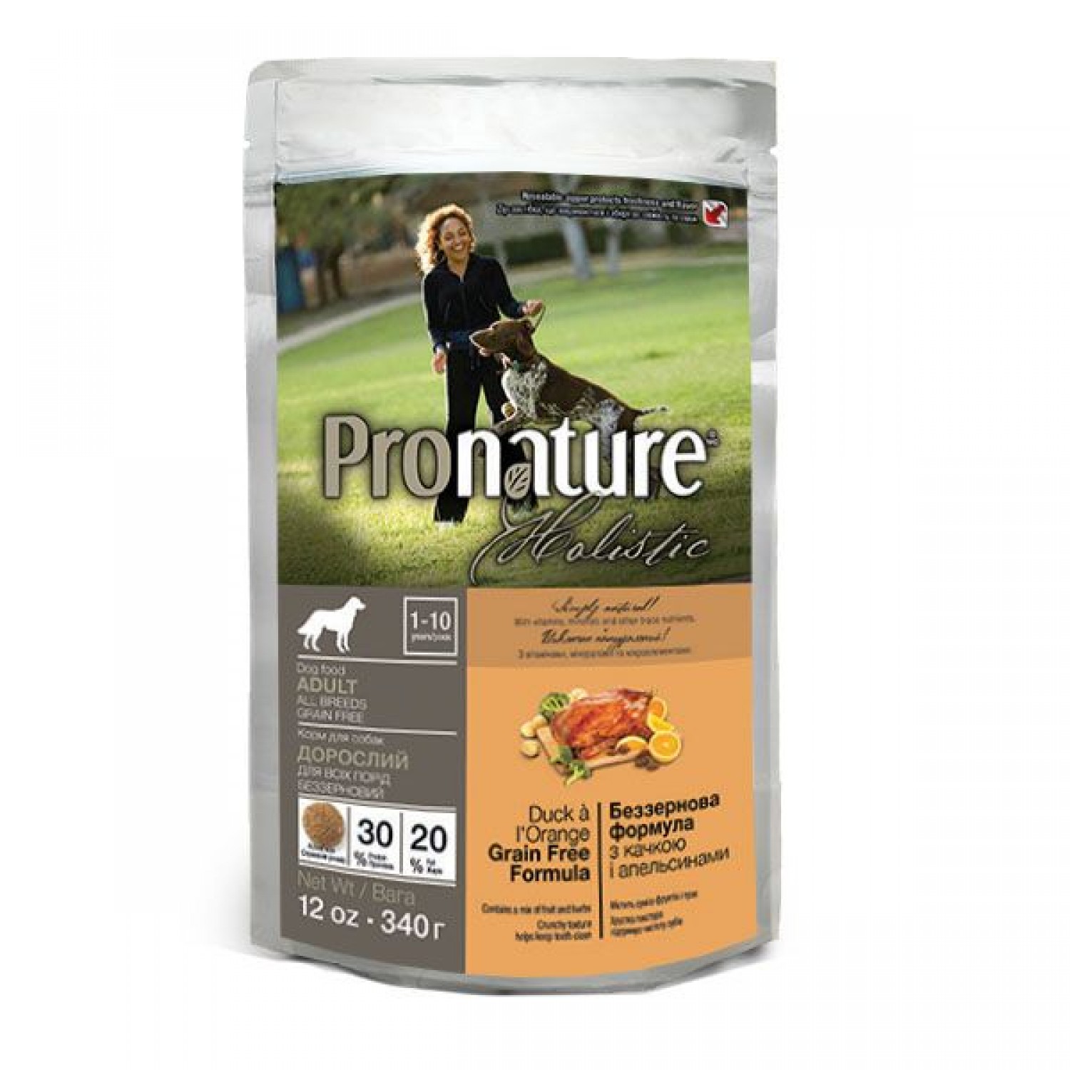 Сухий корм для собак Pronature Holistic Dog з качкою та апельсинами – це здорове та смачне харчування з натуральних продуктів для дорослих собак усіх порід від 1 року.