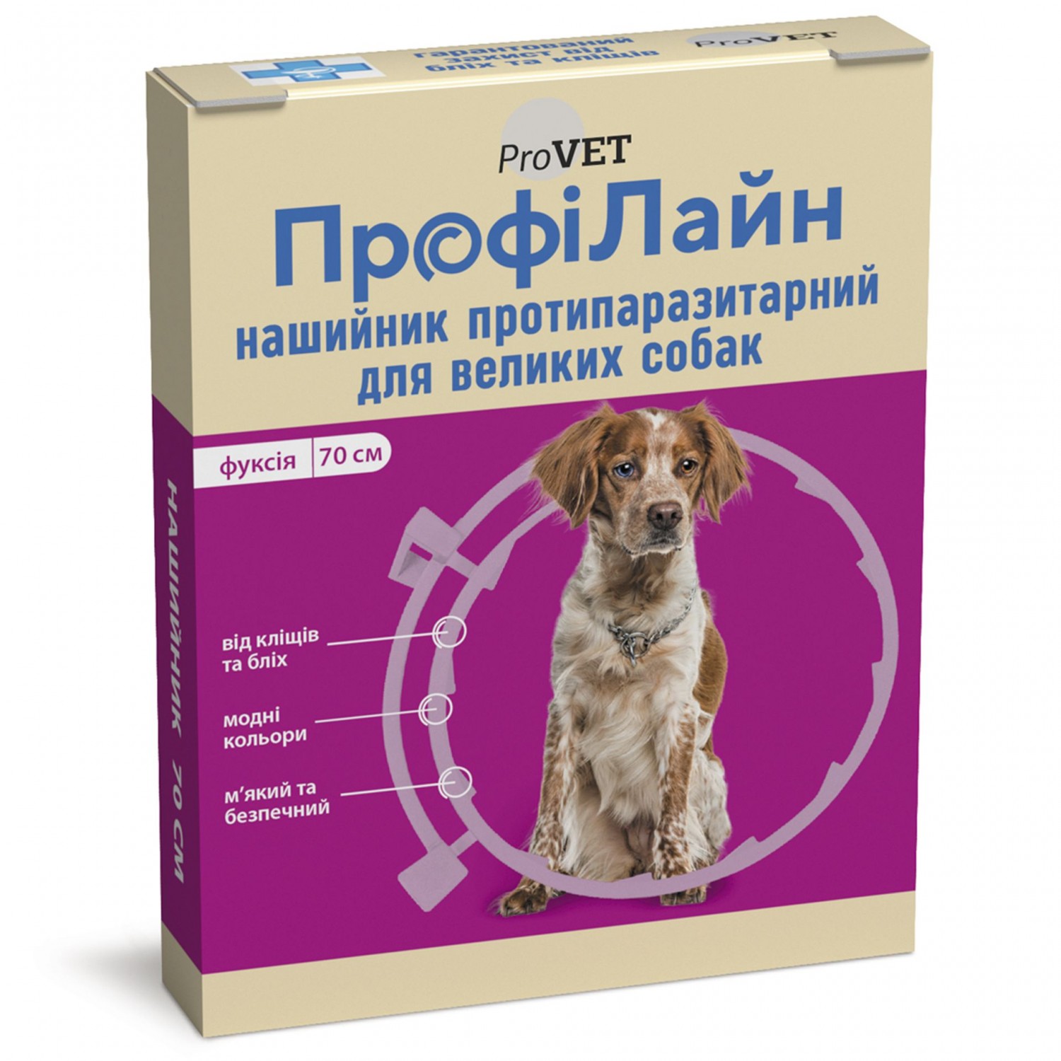 ProVET Профілайн нашийник протипаразитарний для собак великих порід (фуксія).