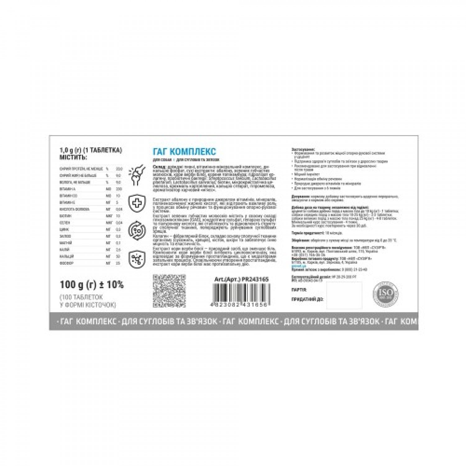 - Підтримка здоров'я суглобів та зв'язок у дорослих тварин.