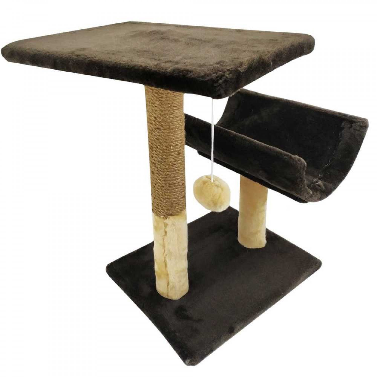 Пухнастики кігтеточка для котів з полицею і напівтунелем (джут) шоколад з бежевим.