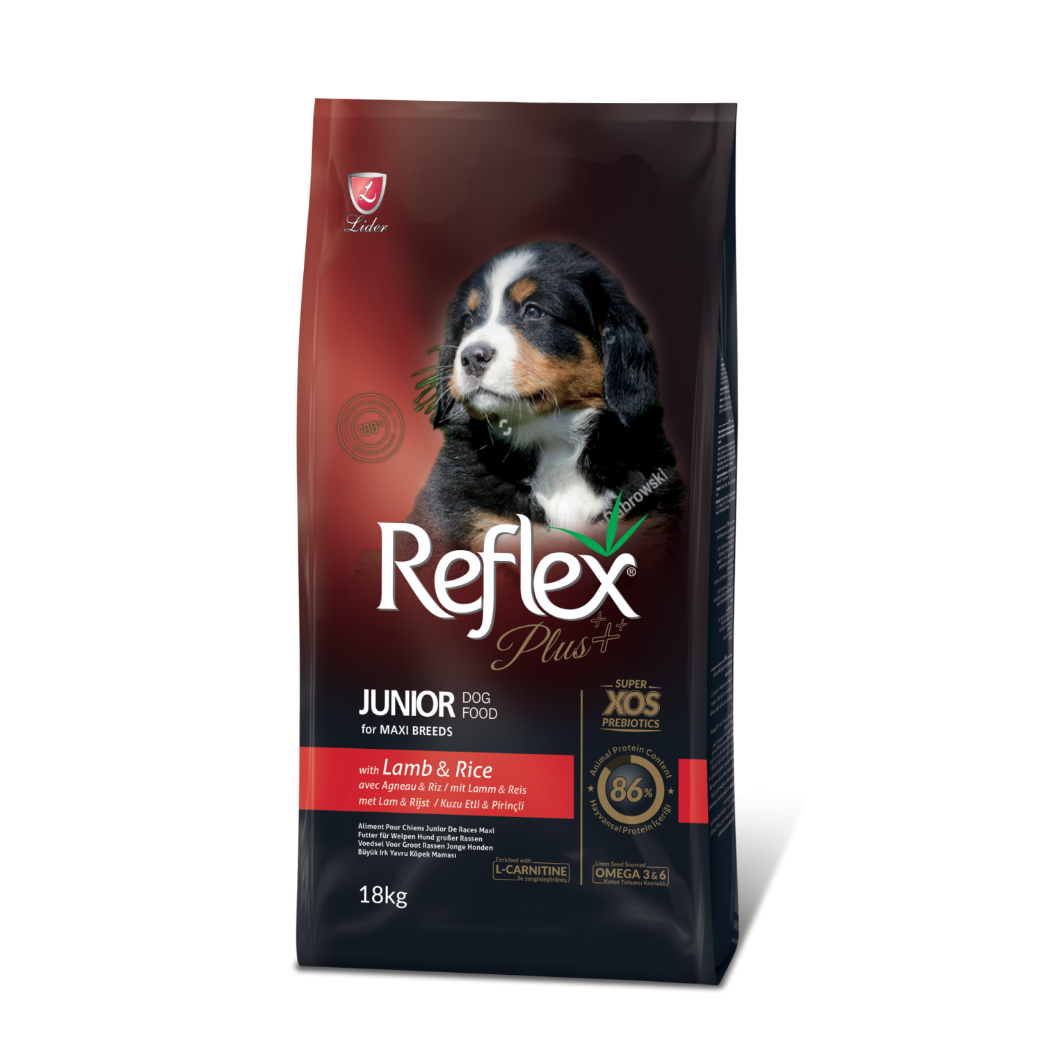 Рефлекс Плюс Повноцінний сухий корм для цуценят великих порід з ягням та рисом.