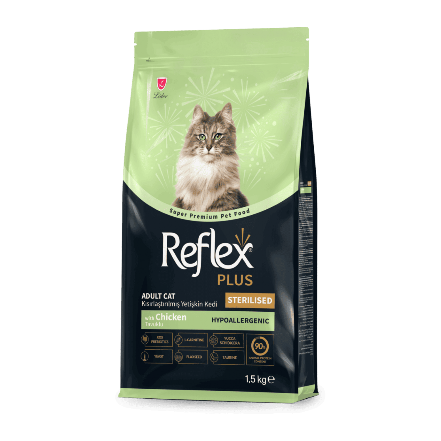 Reflex Plus Sterilized - це повноцінний корм супер-преміум класу з куркою для дорослих котів усіх порід віком від 12 місяців. Формула збагачена вітамінами, мінералами, пребіотиками та антиоксидантами, які підтримують імунітет, здорове травлення та забезпечують блискучу, доглянуту шерсть.