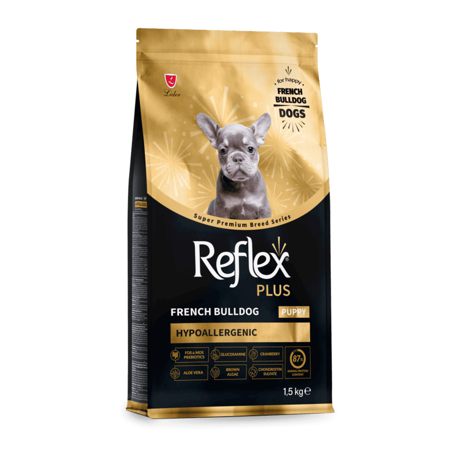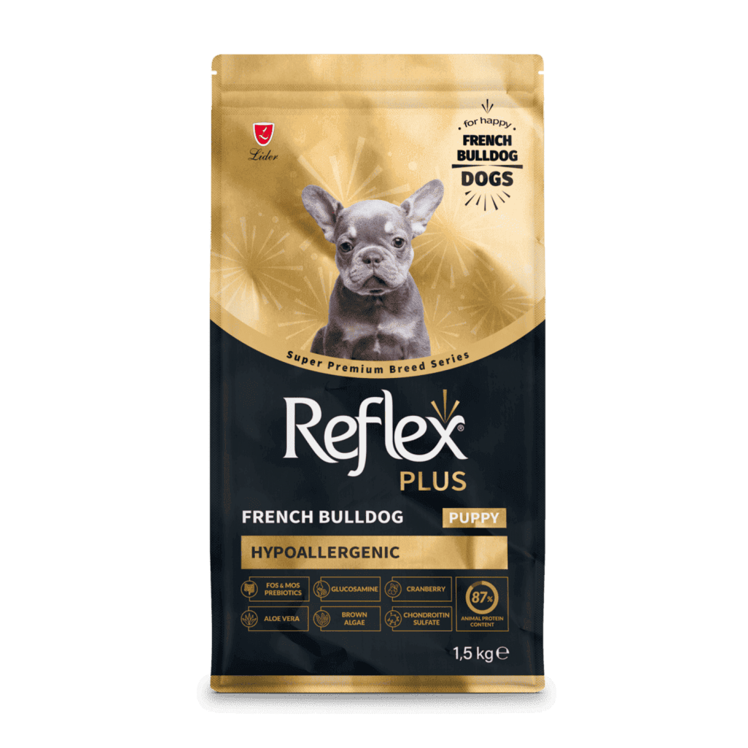 Reflex Plus French Bulldog Puppy - це повноцінний, збалансований та гіпоалергенний сухий корм супер-преміум класу, розроблений спеціально для цуценят породи французький бульдог віком від 2 до 10 місяців. Формула корму враховує всі особливості розвитку цієї породи: від підтримки здорового травлення до правильного формування м’язів, суглобів і зміцнення імунітету в період активного росту. Якісний тваринний білок забезпечує енергію та сприяє гарному набору маси, а омега-3 і омега-6 жирні кислоти підтримують здорову шкіру та блискучу шерсть. Спеціально підібрана форма гранул полегшує захоплення та жування, а додані пребіотики, вітаміни та мінерали створюють надійну основу для здорового старту життя вашого цуценяти.