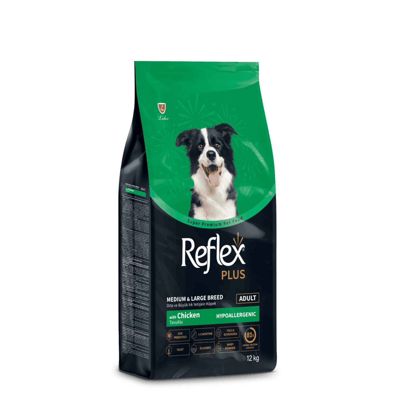 Reflex Plus з куркою для середніх та великих порід - це повноцінний і збалансований сухий корм супер преміум класу, створений для дорослих собак середніх та великих порід віком від 18–24 місяців до 7 років. Раціон на основі високоякісного м’яса курки забезпечує організм собаки легко засвоюваним білком, необхідним для підтримки м’язової маси, енергії та загального тонусу. До складу входять вітаміни, мінерали, пребіотики, жирні кислоти та натуральні антиоксиданти, які сприяють зміцненню імунітету, здоров’ю шкіри та шерсті, підтримці суглобів і нормальному травленню.
