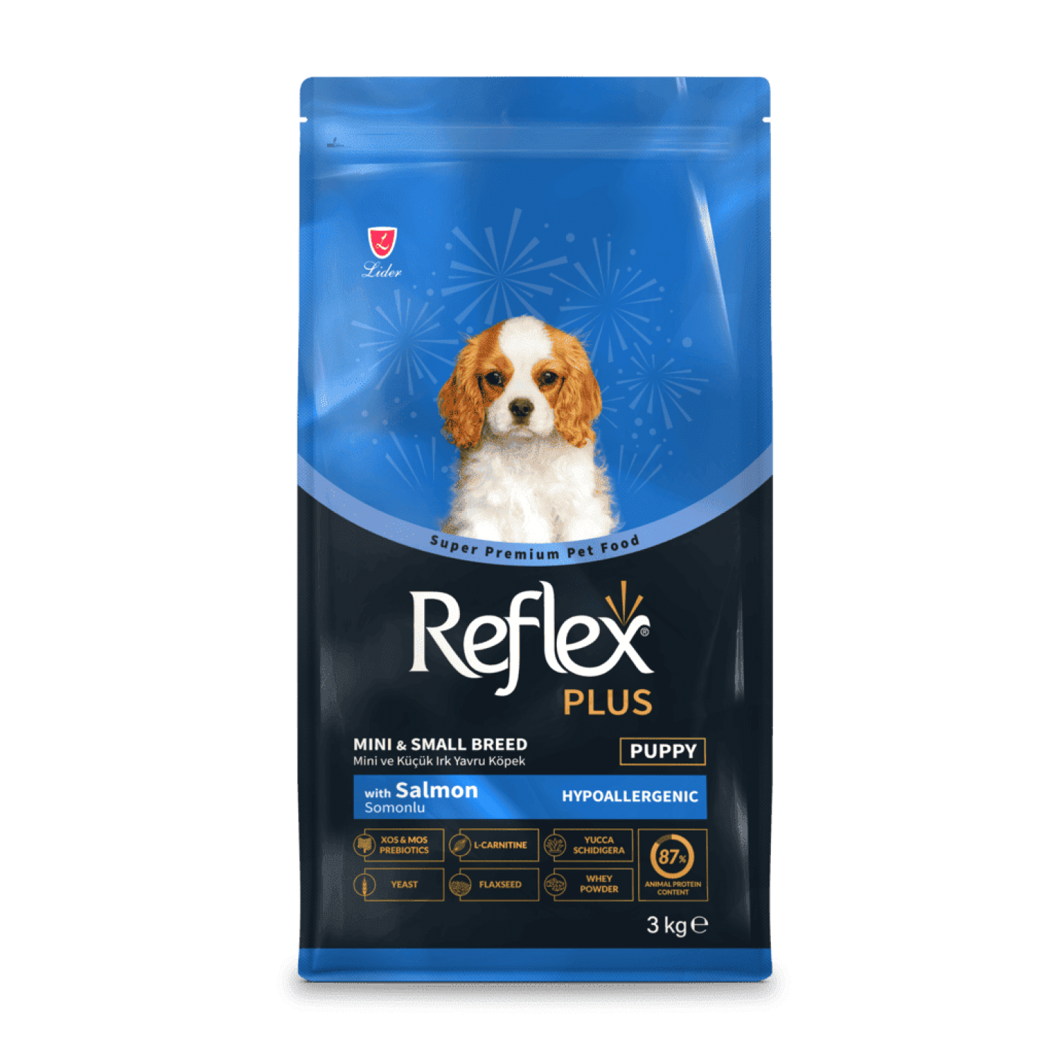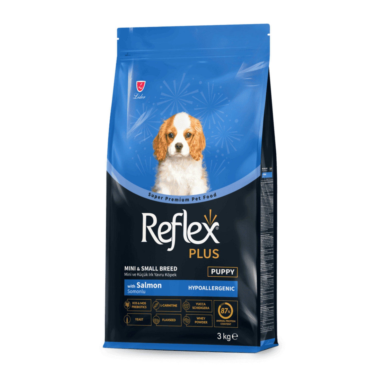 Reflex Plus Mini & Small Breed Puppy повноцінний та збалансований сухий корм для цуценят малих порід з лососем.