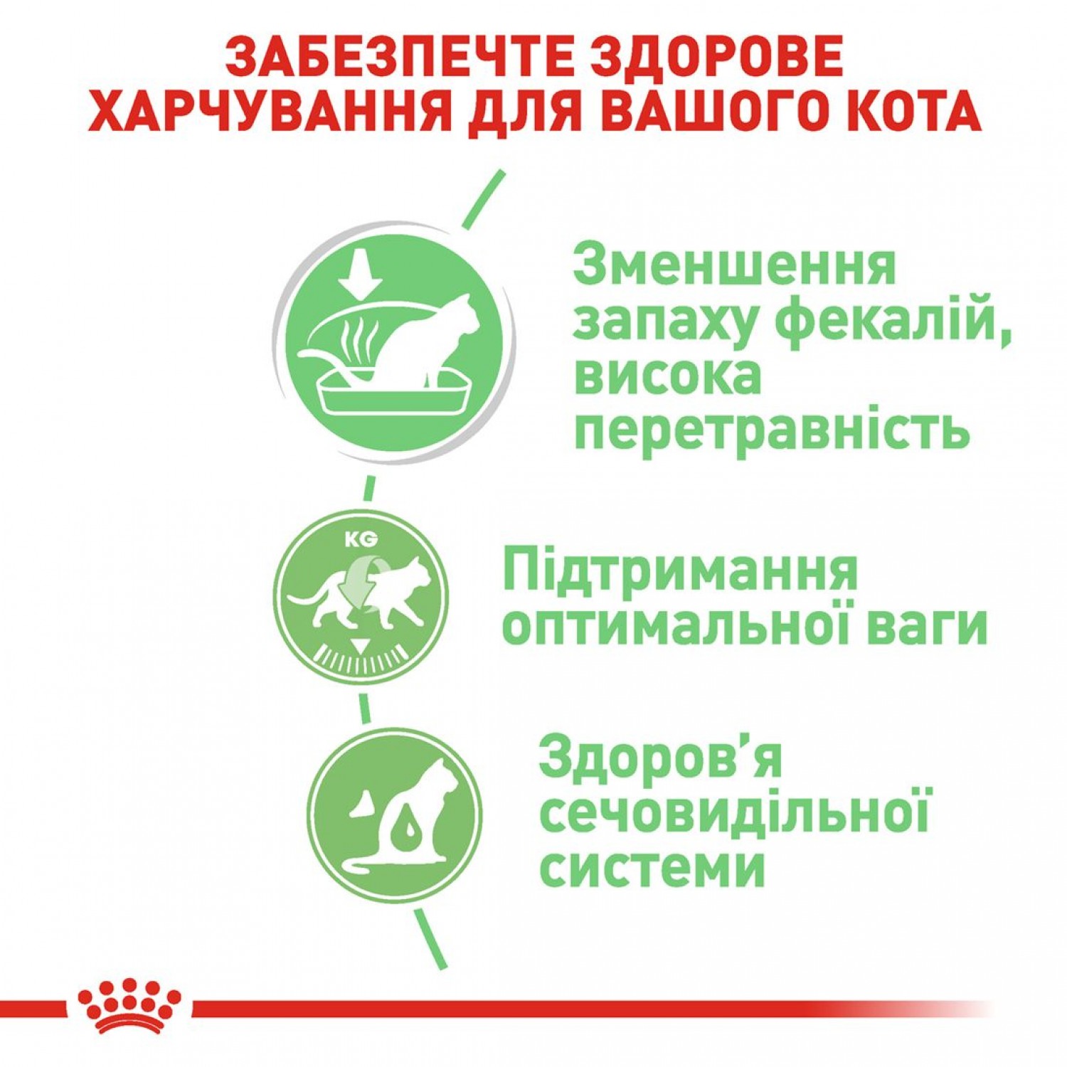 Високозасвоюваний раціон Royal Canin Digestive Sensitive містить легкозасвоювані білки, має виняткову апетитність та помірну калорійність, зменшує запах фекалій.