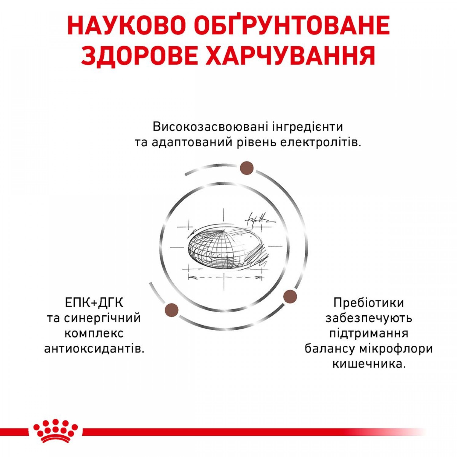 Дієтичний сухий корм для котів при розладах травлення. Підходить для котів із зайвою вагою. Регулює насичення при мінімізації об'єму порції, що стримує набір ваги. Можна застосовувати в разі втрати апетиту. Має високу смакову привабливість і заохочує до трапези. Ефективний у разі хронічної діареї, сприяє налагодженню процесу дефекації.