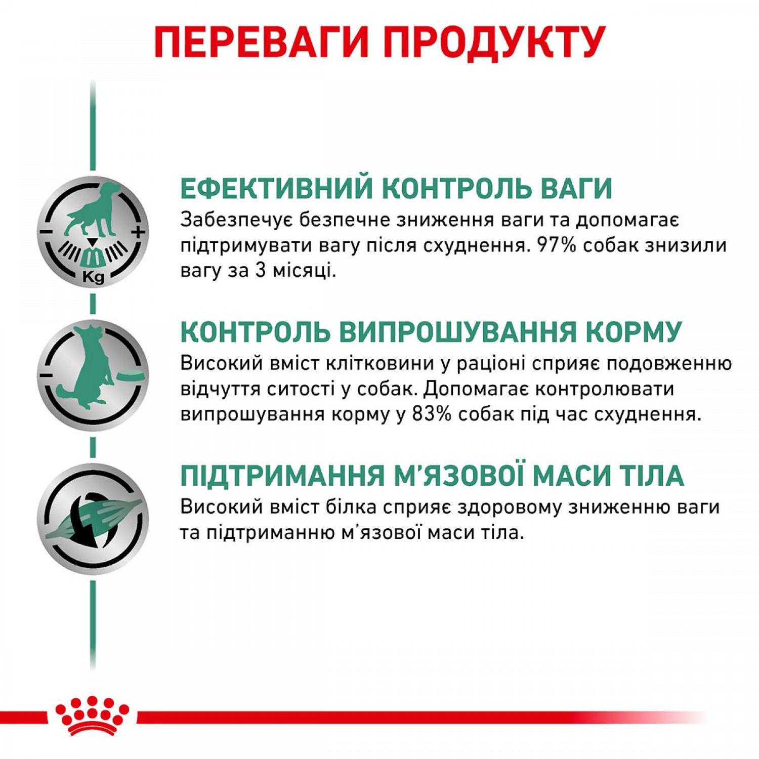 Вологий дієтичний корм для дорослих собак, які страждають від зайвої ваги. Допомагає задовольнити апетит собаки і при цьому підтримати у нього відчуття насиченості, що в свою чергу призводить до зниження частоти випрошування їжі і запуску процесу схуднення.