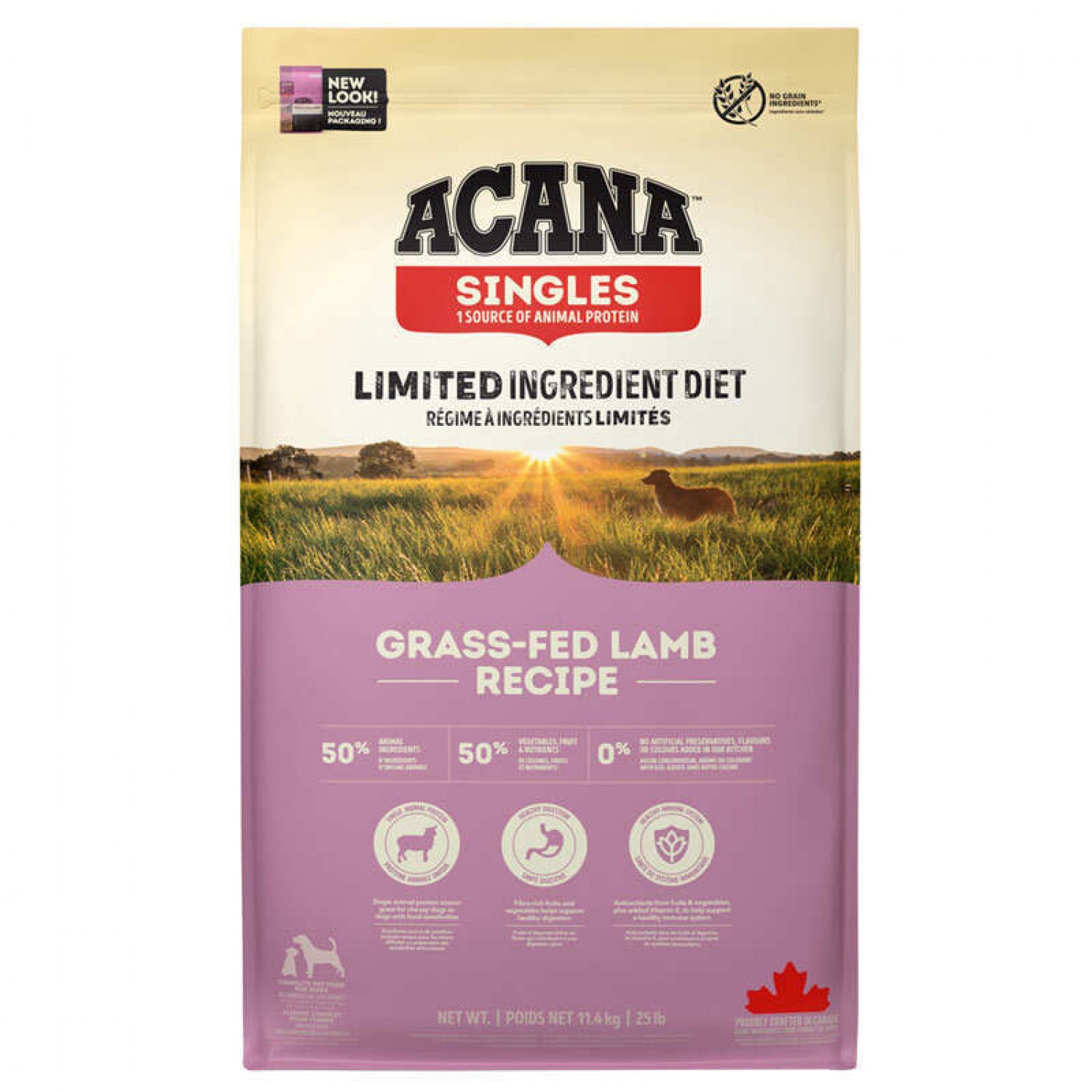 ACANA Grass-Fed Lamb - это рацион с ограниченным количеством ингредиентов, где мясо ягненка (50%) является единственным источником легкопереваримых протеинов - это идеально подходит для всех собак с чувствительным пищеварением. Ограниченное количество ингредиентов совсем не означает, что мяса в корме меньше.