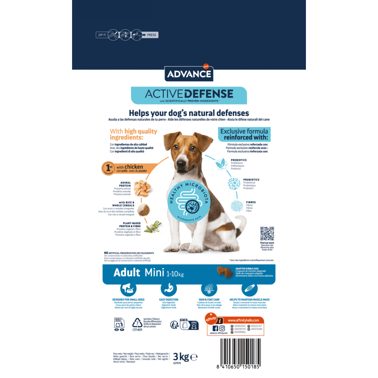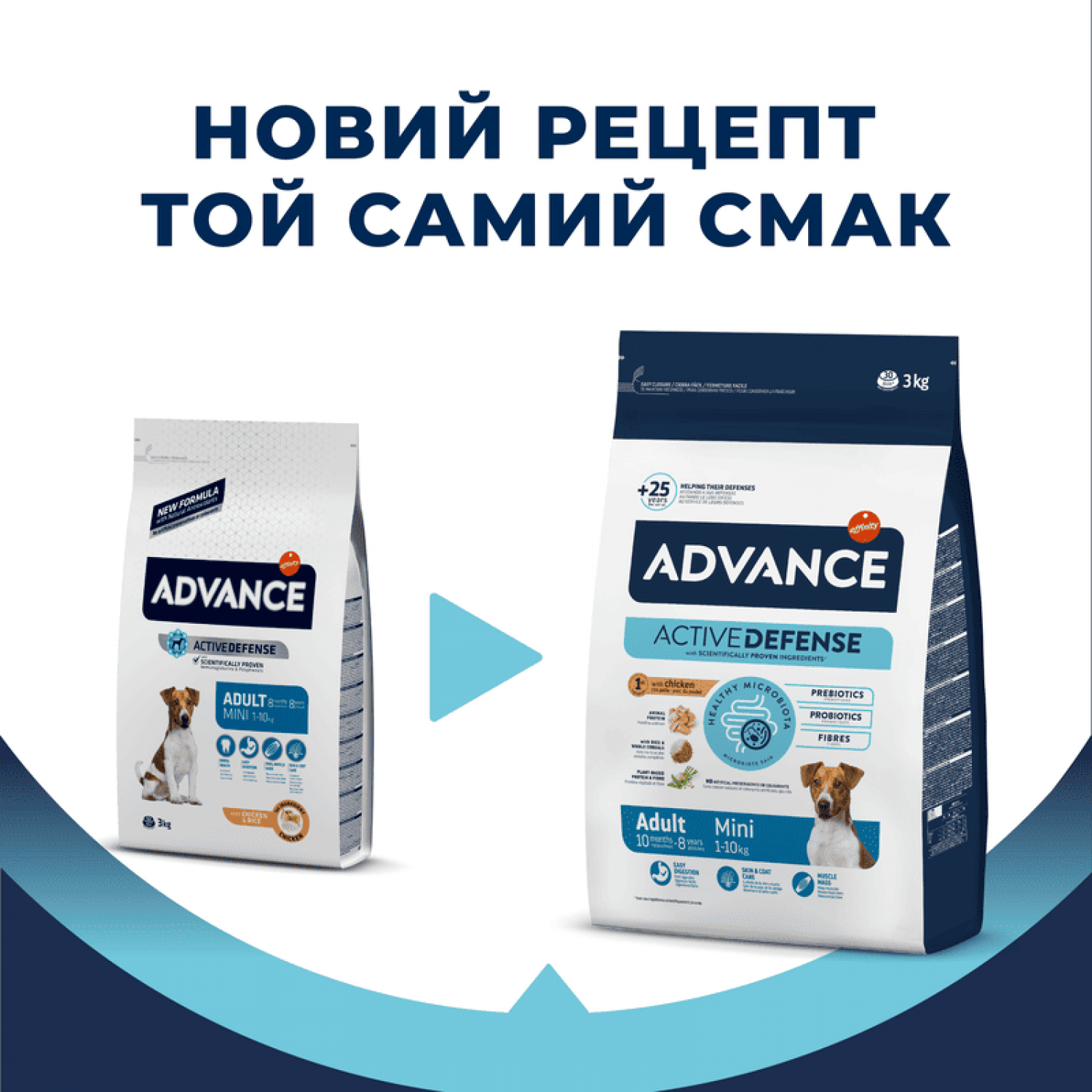 Advance Dog Mini Adult - это высококачественный, сбалансированный и полнорационный сухой корм, созданный специально для взрослых собак малых пород весом до 10 кг в возрасте от 10 месяцев до 8 лет. Формула корма разработана с учетом особенностей обмена веществ у малых пород и обеспечивает их жизненную энергию, здоровое пищеварение и крепкий иммунитет. Благодаря содержанию качественных белков, жирных кислот омега-3 и омега-6, витаминов и минералов Advance Dog Mini Adult поддерживает идеальную физическую форму, блестящую шерсть и здоровую кожу вашего любимца. Это вкусный и питательный выбор для ежедневного рациона активных собак мини пород.