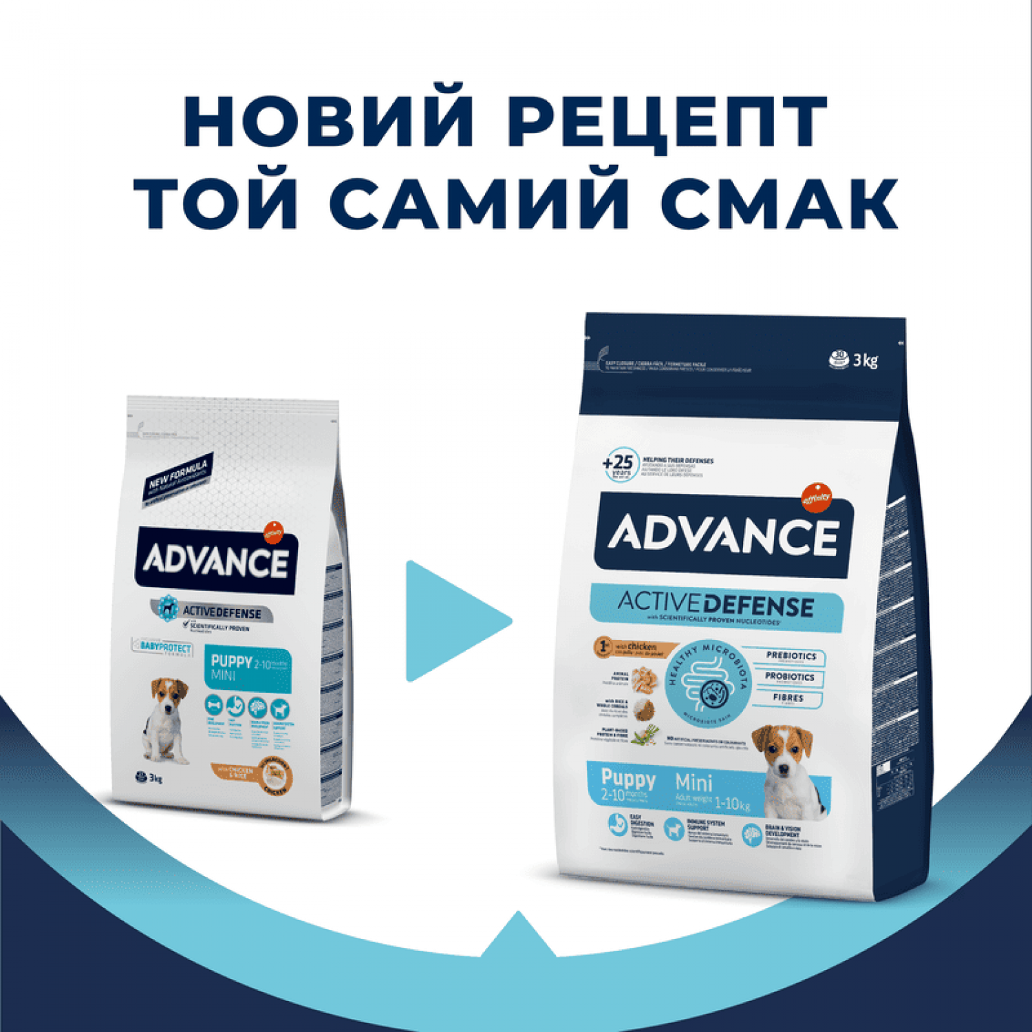 Advance Dog Mini Puppy сухой корм для щенков малых​ пород с курицей и рисом.