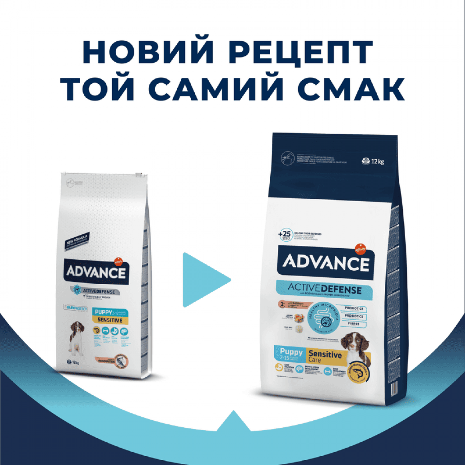 Advance Dog Puppy Sensitive - это высококачественный корм супер премиум класса, специально разработанный для щенков всех пород в возрасте от 2 до 15 месяцев, а также для беременных и кормящих собак с чувствительным пищеварением. Благодаря тщательно подобранным ингредиентам, в частности, легкоусвояемому белку рыбы, этот рацион поддерживает здоровое пищеварение, уменьшает риск пищевой непереносимости и обеспечивает организм всеми необходимыми питательными веществами для гармоничного роста и развития. Обогащенный жирными кислотами омега-3 и омега-6, витаминами и минералами корм способствует укреплению иммунной системы, поддерживает здоровье кожи и блестящей шерсти.