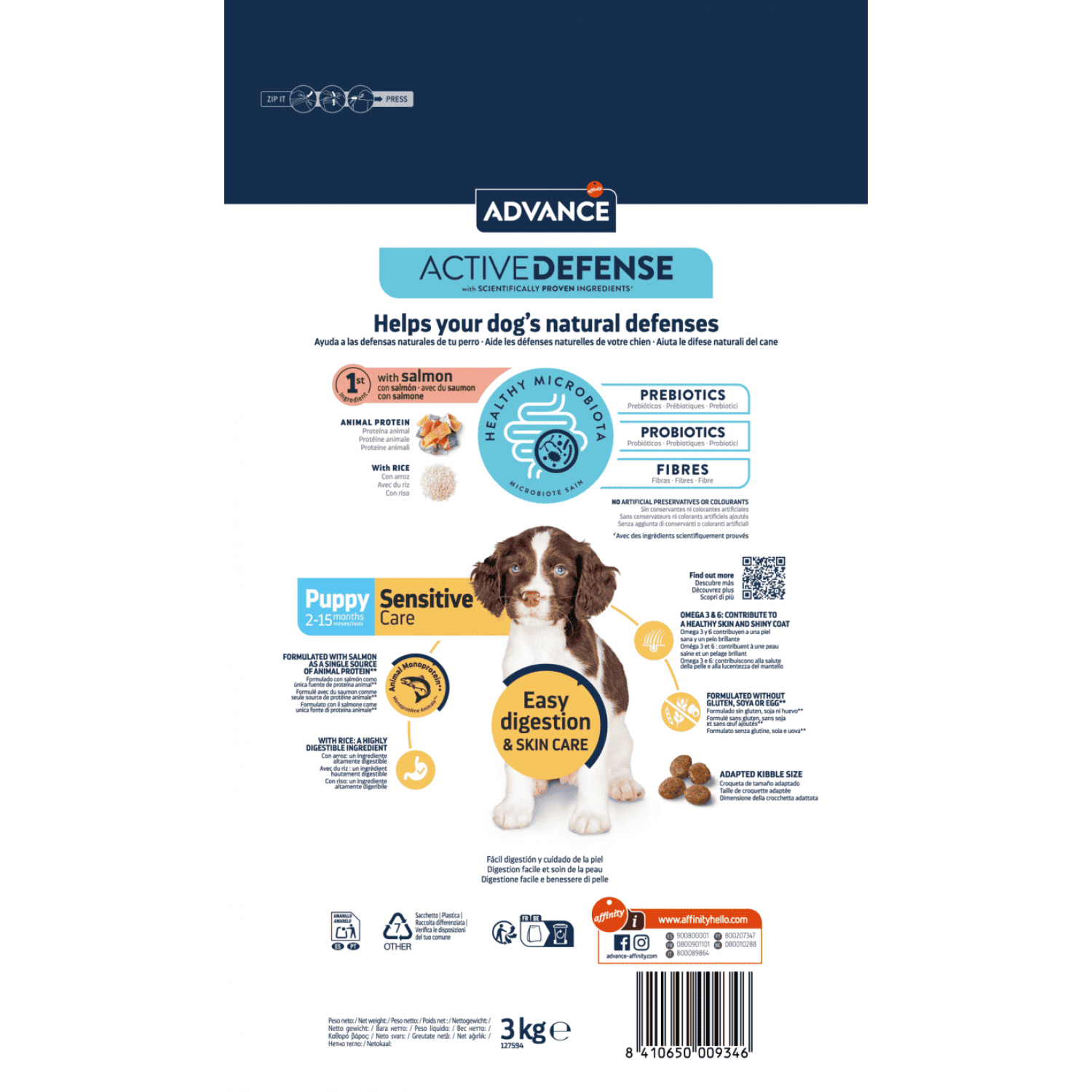 Advance Dog Puppy Sensitive - это высококачественный корм супер премиум класса, специально разработанный для щенков всех пород в возрасте от 2 до 15 месяцев, а также для беременных и кормящих собак с чувствительным пищеварением. Благодаря тщательно подобранным ингредиентам, в частности, легкоусвояемому белку рыбы, этот рацион поддерживает здоровое пищеварение, уменьшает риск пищевой непереносимости и обеспечивает организм всеми необходимыми питательными веществами для гармоничного роста и развития. Обогащенный жирными кислотами омега-3 и омега-6, витаминами и минералами корм способствует укреплению иммунной системы, поддерживает здоровье кожи и блестящей шерсти.