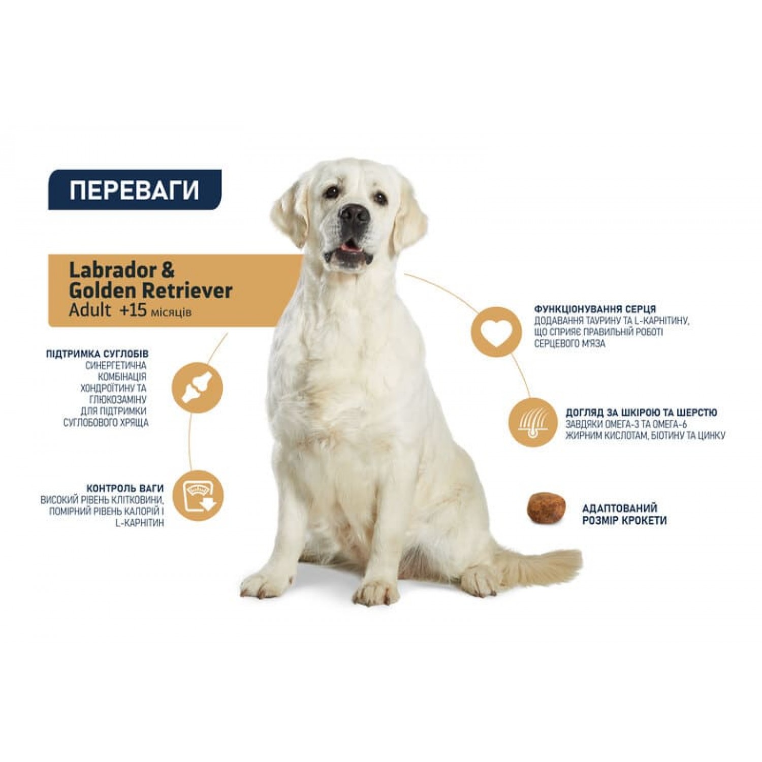Advance Dog Labrador & Golden Retriever - это высококачественный, сбалансированный, полнорационный корм, который был специально разработан для удовлетворения пищевых нужд собак пород Лабрадор и Золотистый ретривер с 15 месяцев. Корм содержит специальные функциональные ингредиенты с оптимальным уровнем калорийности для поддержания идеального веса Лабрадора, а структура гранул адаптирована специально для этих пород.