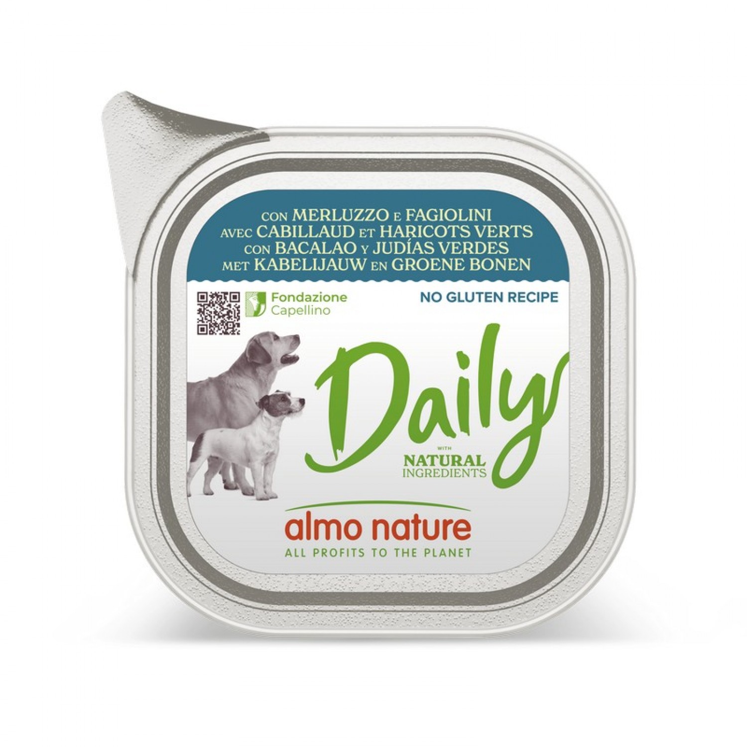 Almo Nature Daily Dog паштет с треской и зеленой фасолью - это полноценный влажный корм, идеально сбалансированный для ежедневного питания взрослых собак.