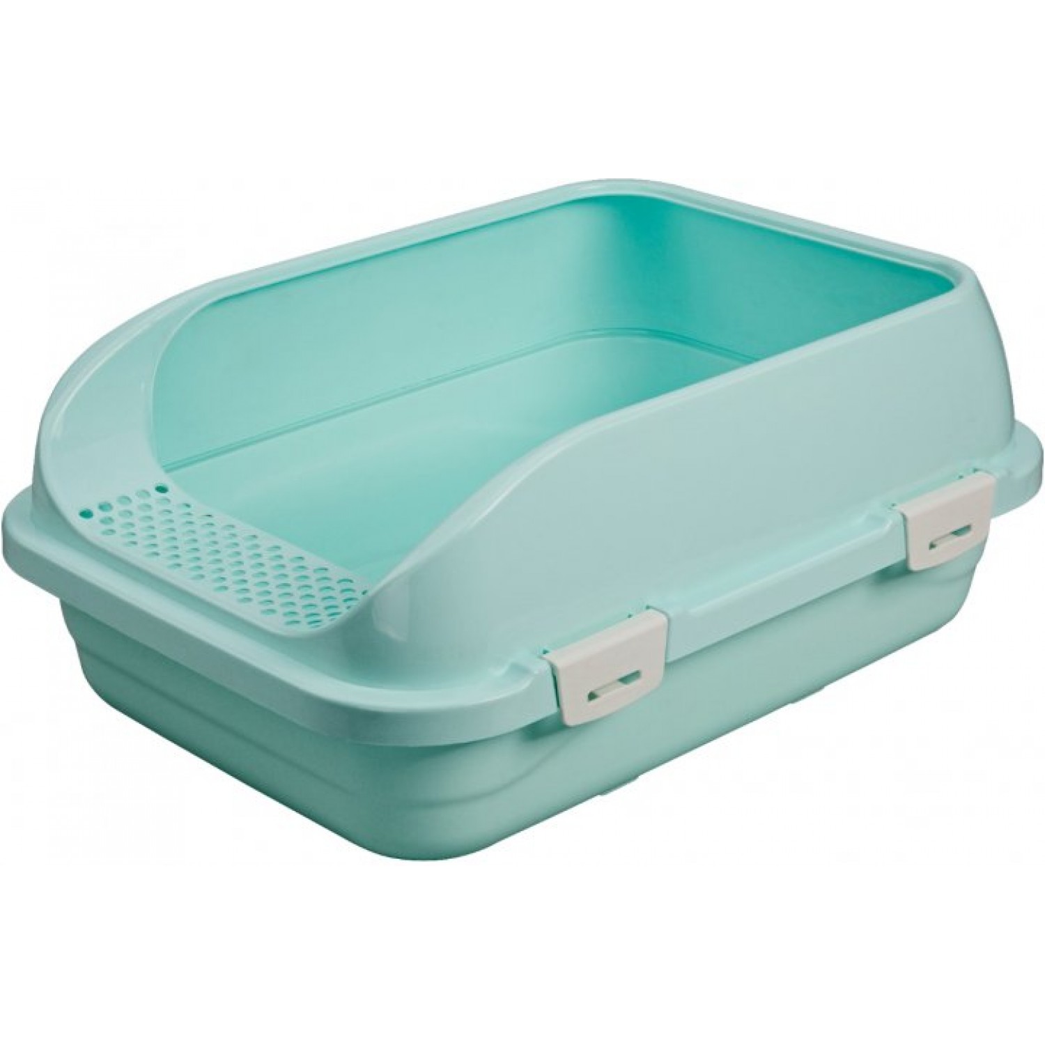Удобный пластиковый туалет с высоким защитным бортиком. Практичная прямоугольная модель, специально оснащена дополнительной съемной рамкой, которая препятствует разбрасыванию наполнителя вокруг туалета.