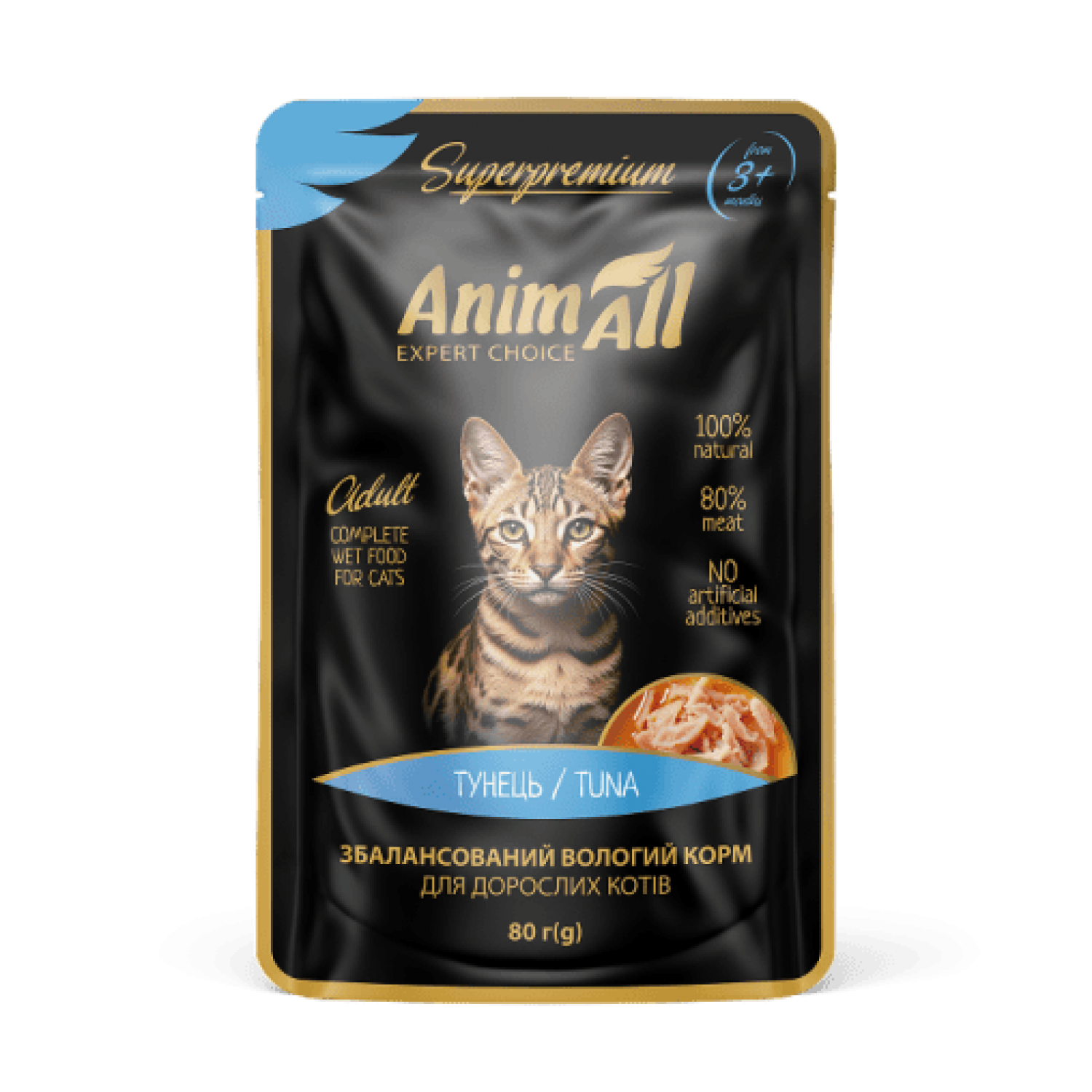 AnimAll Влажный корм c тунцом - это чистый морской вкус, созданный для настоящих ценителей деликатесов среди кошек. В каждом пауче – 80% натурального тунца, дающего не только изысканный вкус, но и полноценную пользу для здоровья. Такой корм легко усваивается, богат белком и омега-3 жирными кислотами, которые поддерживают крепкие мышцы, здоровую сердечно-сосудистую систему и сияющую шерсть. Идеальный выбор для ежедневного рациона вашего пушистого друга – вкусно, натурально и с заботой о его самочувствии.