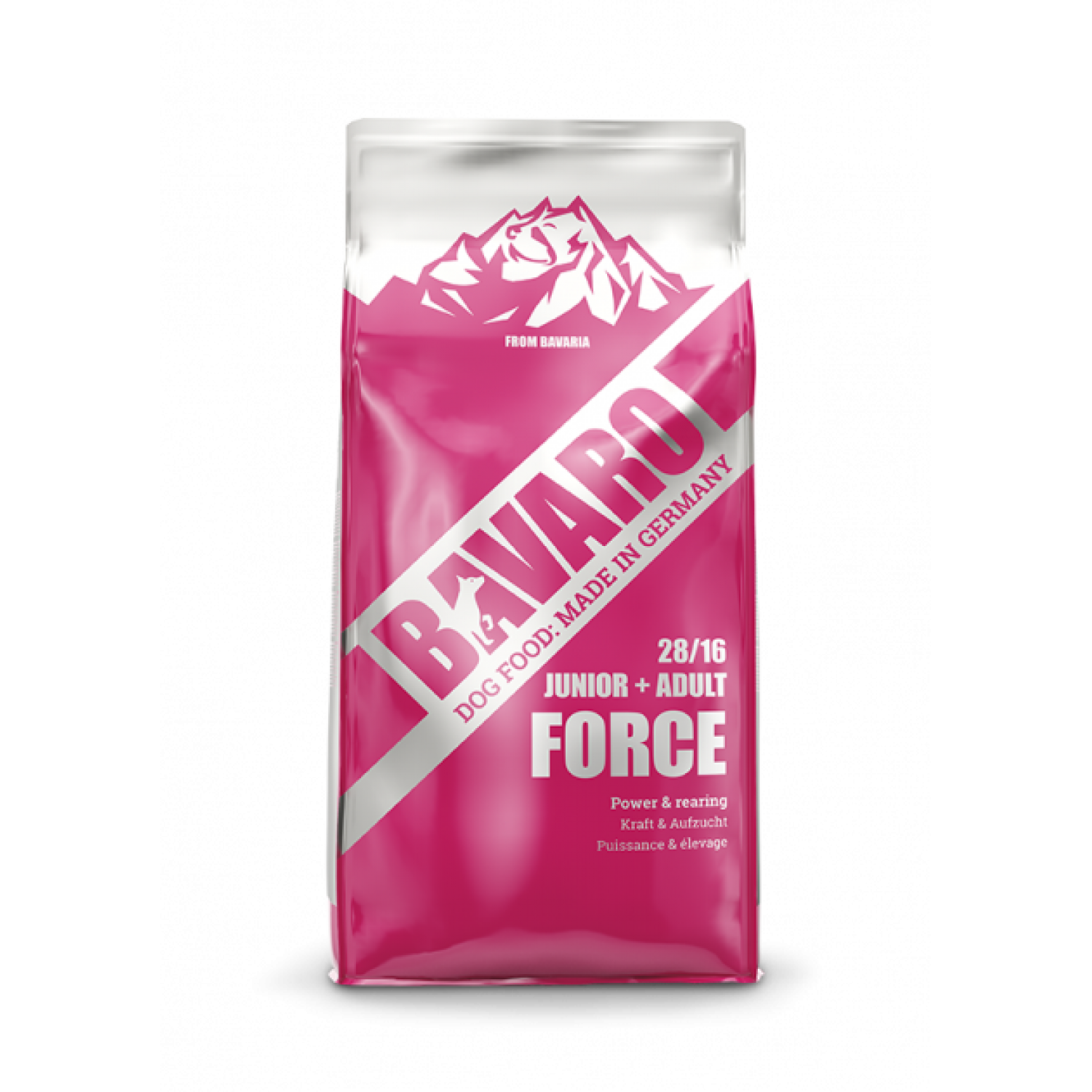 BAVARO Force 28/16 – сухой корм премиум класса для молодых и взрослых рабочих собак. Корм разработан для собак с высокой потребностью в энергии из-за тяжелой физической работы. Благодаря особому соотношению протеина и жира этот корм также может использоваться для выращивания молодых собак со 2-го месяца жизни.