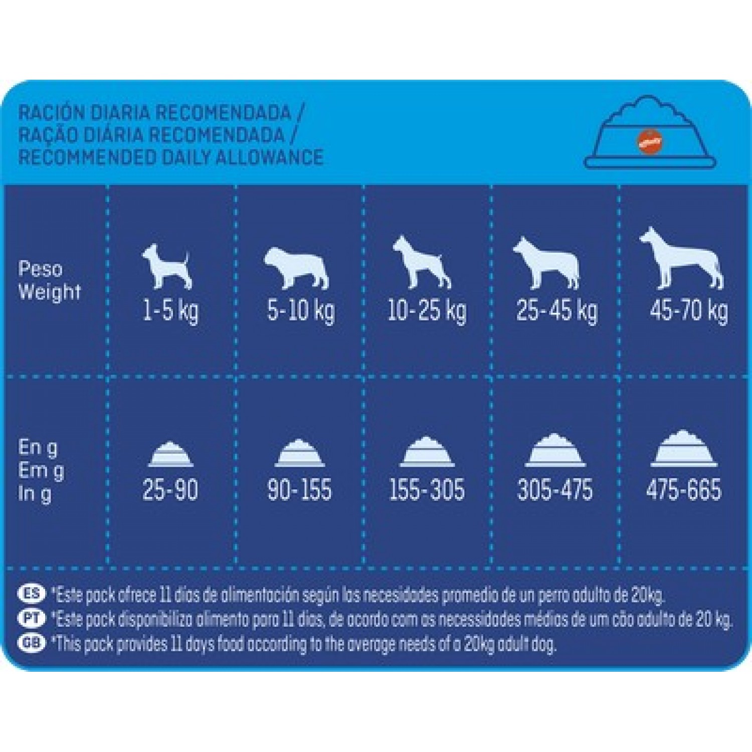 Соблюдайте нормы кормления, указанные в таблице на упаковке, но учитывайте индивидуальные потребности собаки.