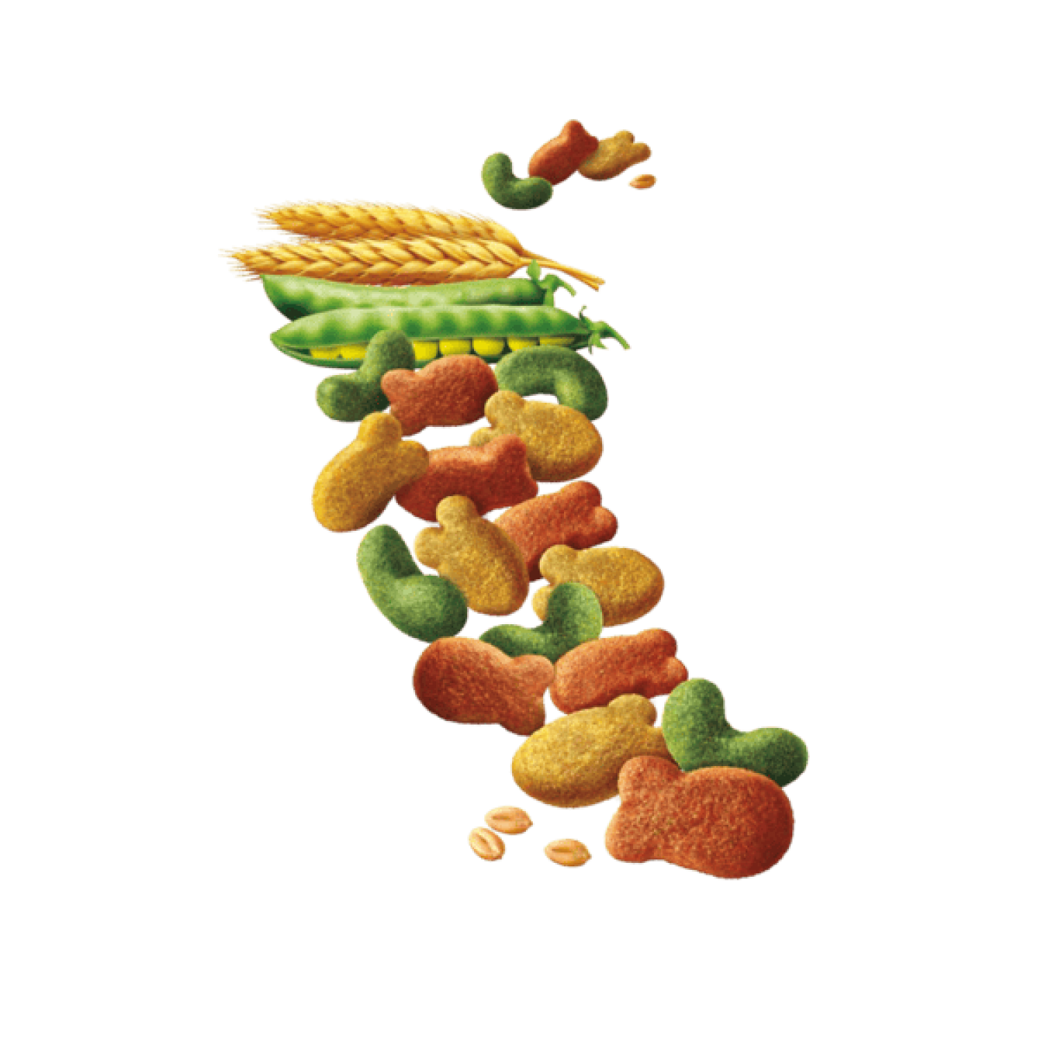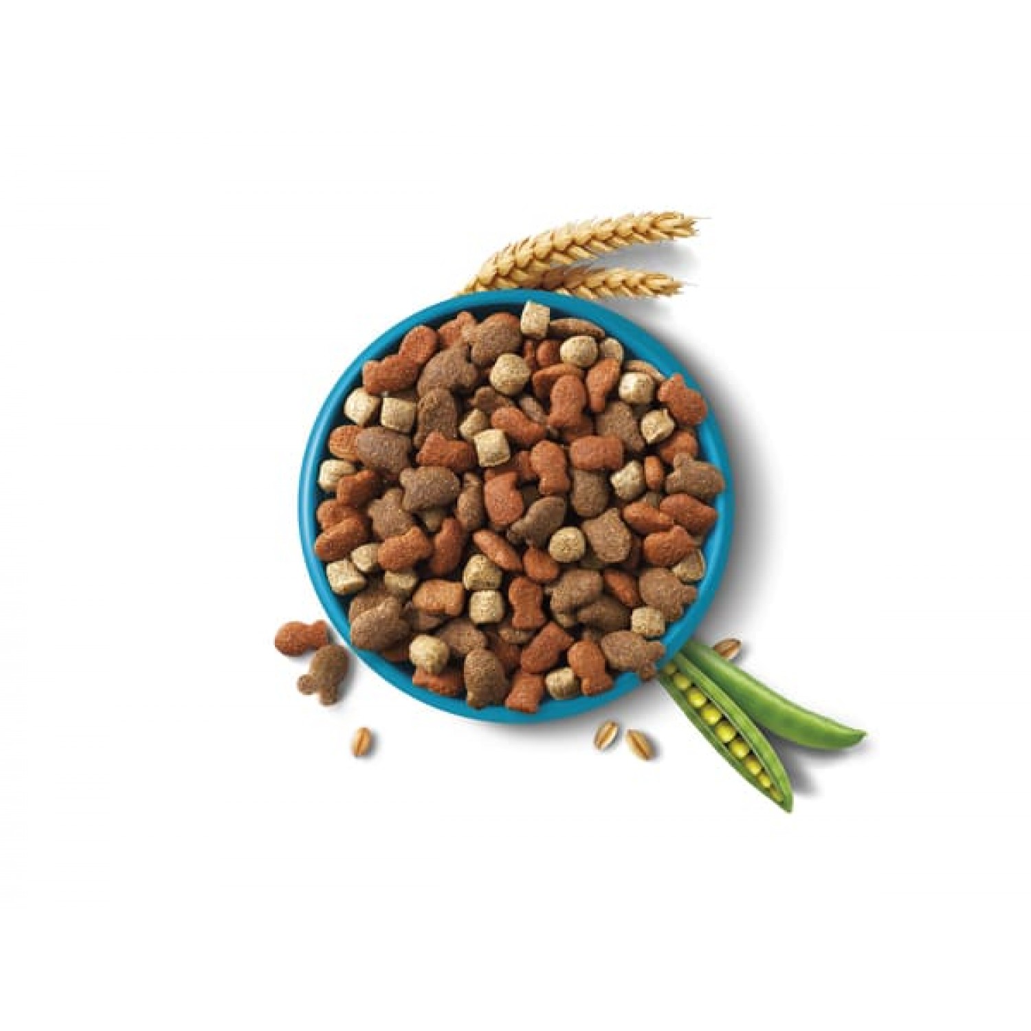 Состав: зерновая крупа (10% пшеница, 4% кукуруза), продукты овощного происхождения (2,5% свекольная стружка), мясо и продукты животного происхождения, масла и жиры, рыба и продукты рыбного происхождения (4% обезвоженные лососевые белки), минералы, овощи (1% обезвоженного гороха, что эквивалентно 4% свежего гороха, 0,05% обезвоженной моркови, что эквивалентно 0,4% свежей моркови), антиоксиданты и натуральные красители.