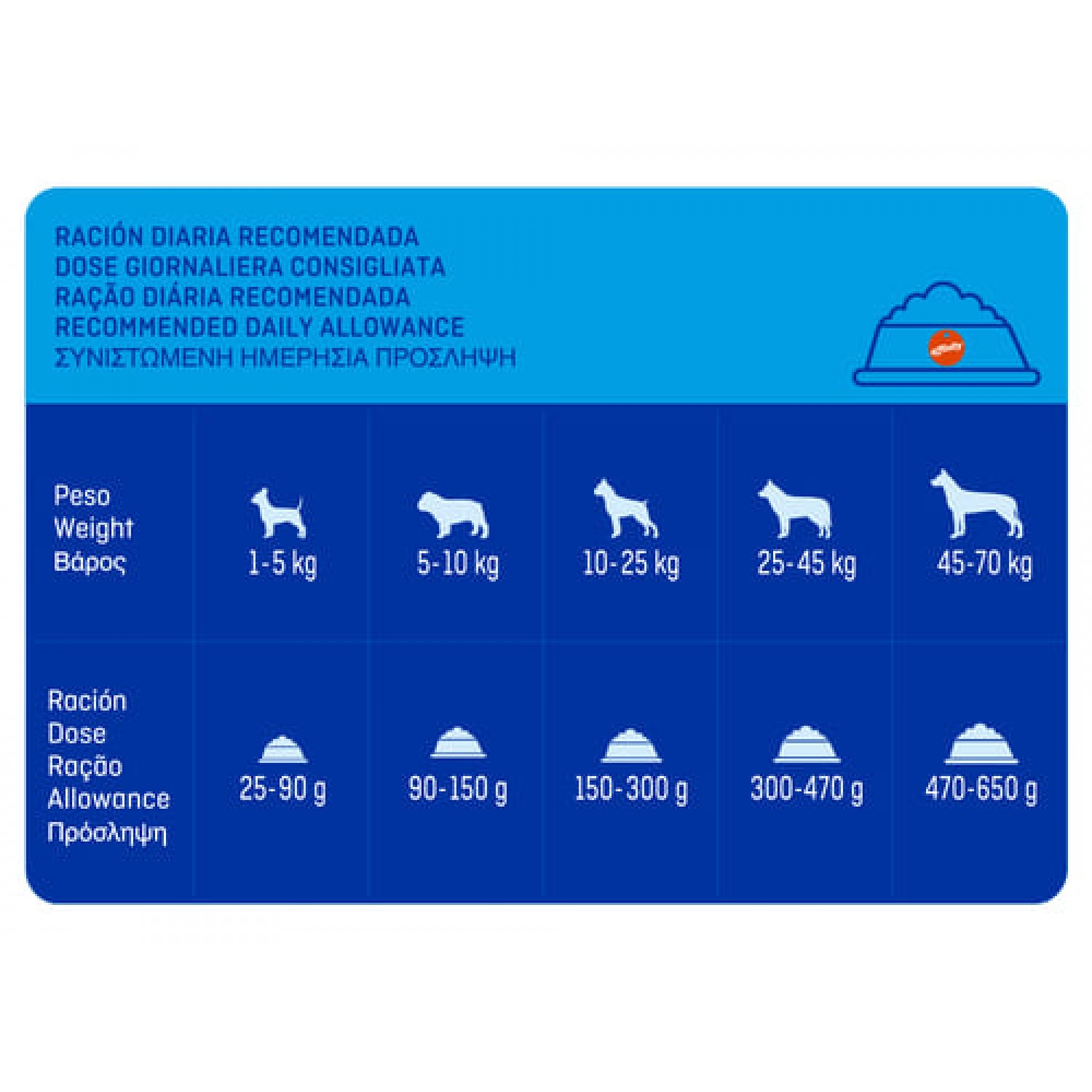 Соблюдайте нормы кормления, указанные в таблице на упаковке, но учитывайте индивидуальные потребности собаки.