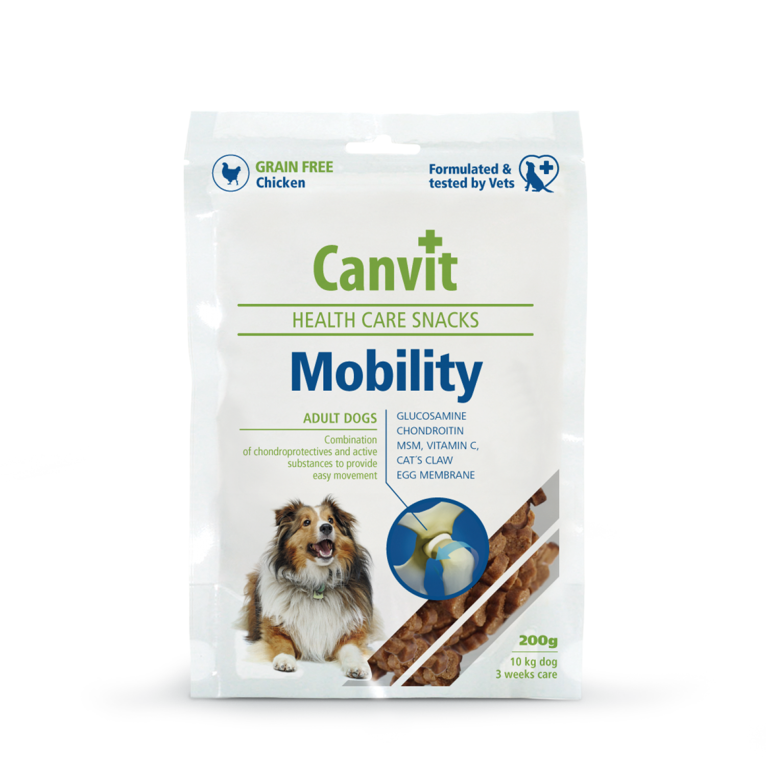 Беззерновое полувлажное лакомство с курицей, глюкозамином, хондроитином и МСМ для взрослых или стареющих собак с проблемами опорно-двигательного аппарата. Представляет собой функциональное угощение, помогающее восстановить и защитить суставы, а также уменьшить боль и улучшить подвижность питомца.