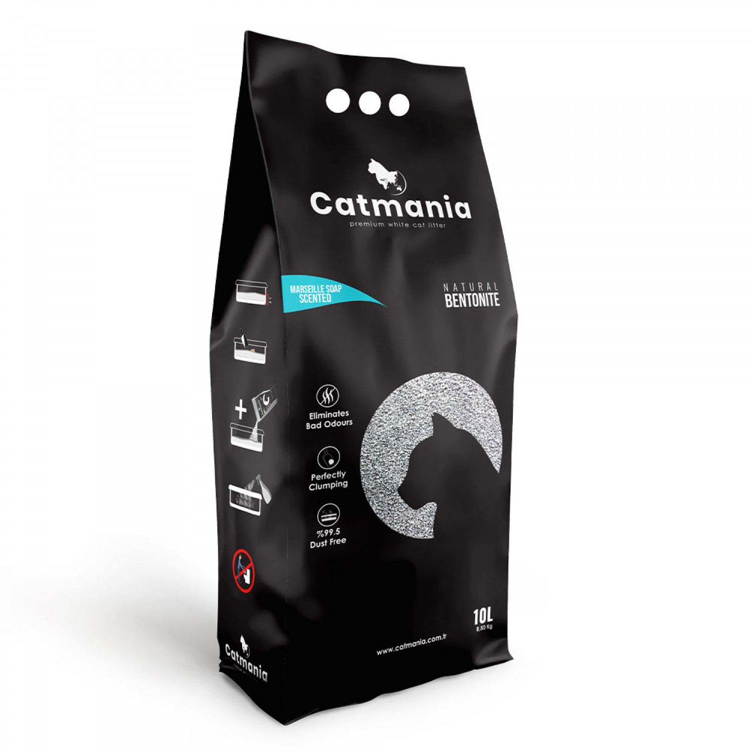 Catmania — белый природный бентонитовый наполнитель, который обеспечивает превосходную эффективность комкования. Наполнитель Catmania обеспечит более комфортное и экологическое содержание питомца. Гранулы имеют компактную форму, плоские и достаточно жесткие. Это дает отличную производительность для экономического и длительного использования с эффективной борьбой с неприятными запахами. Цветные бирюзовые гранулы ароматизированы марсельским мылом. Он обладает очень высокой абсорбционной способностью.