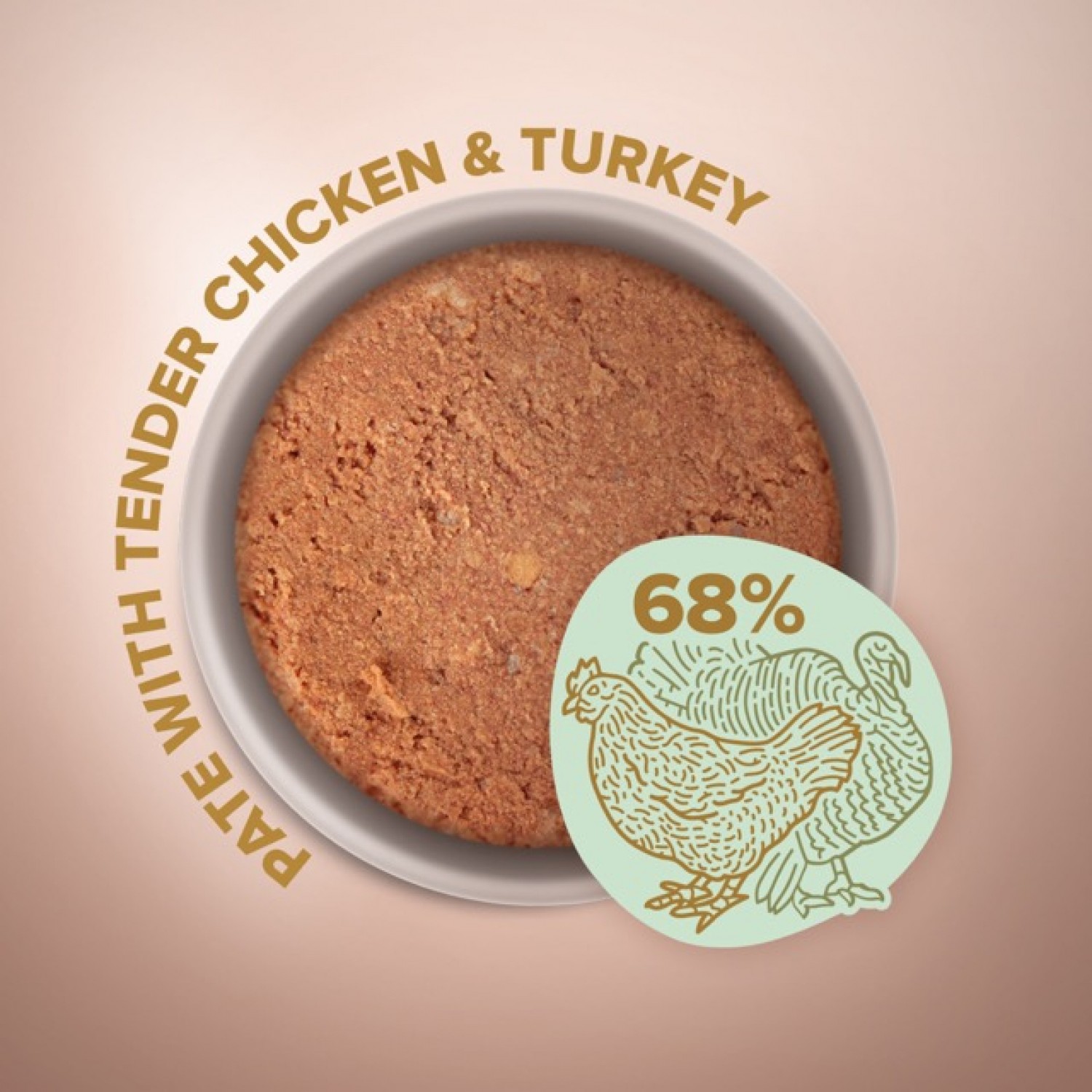 Паштет с курицей и индейкой для собак производится без использования искусственных ароматизаторов и красителей.