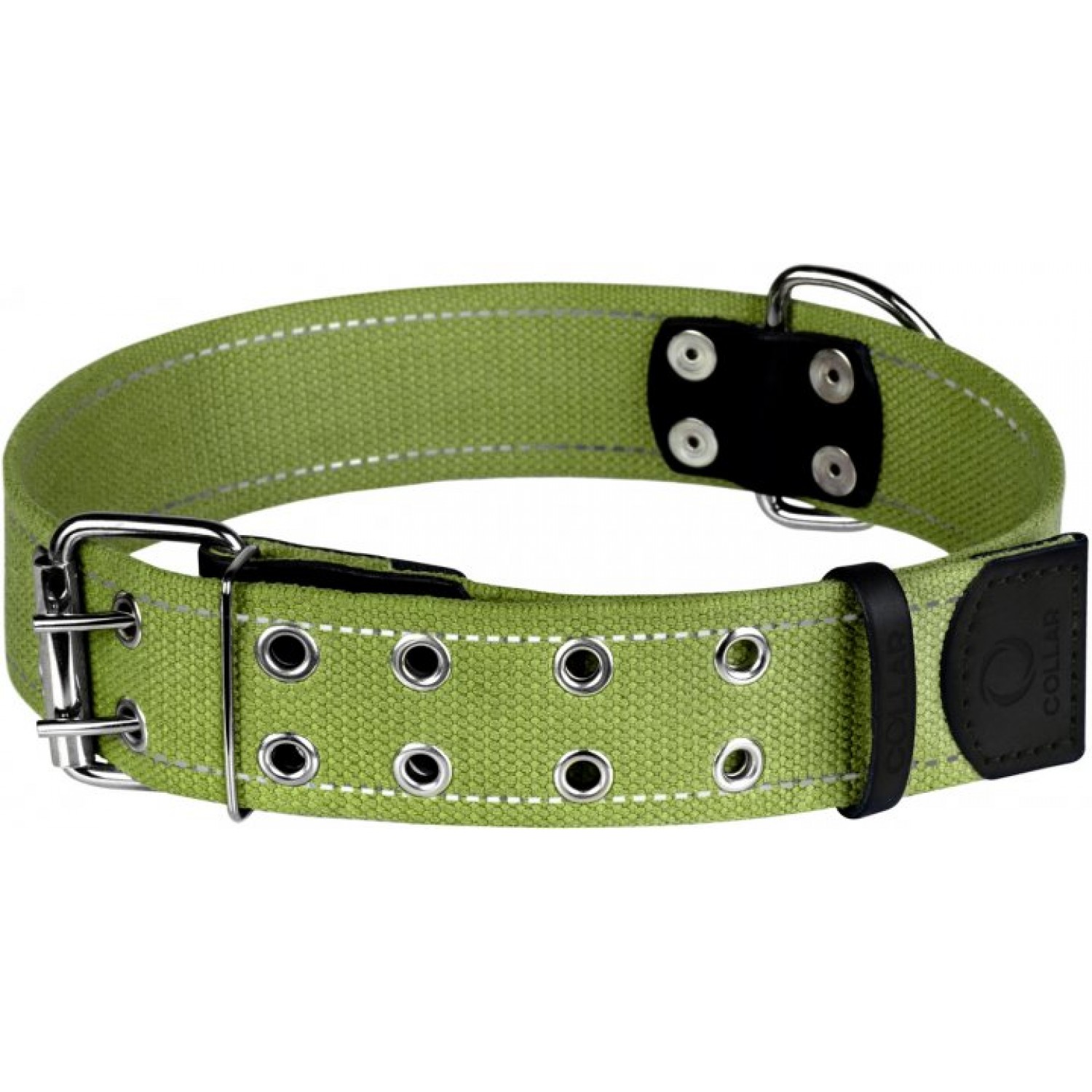 Ошейник прошит двумя светоотражающими нитками.