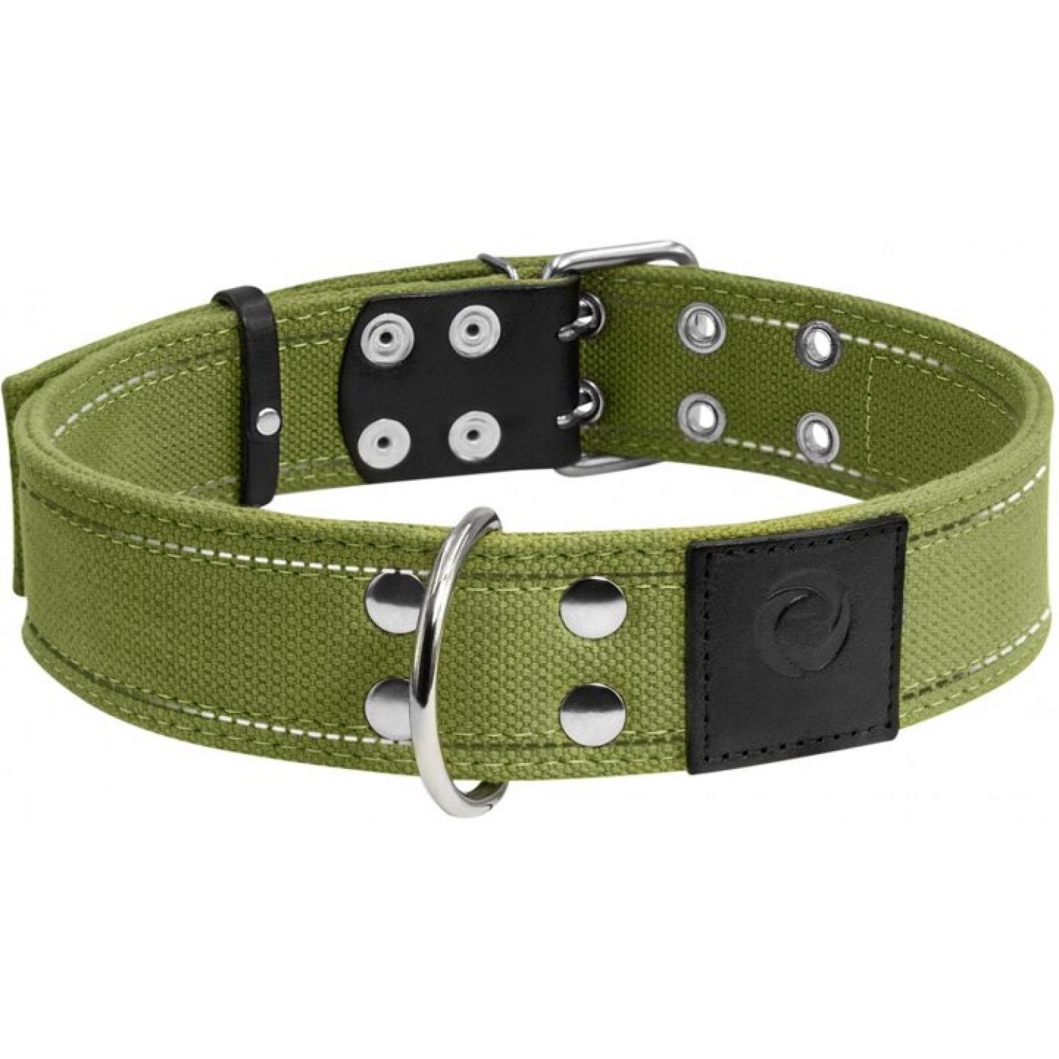Ошейник Collar брезентовый, двойной со светоотражающей нитью. Ошейник из х/б тесьмы может использоваться для ежедневных прогулок и для дрессировки. Ошейник прошит двумя светоотражающими нитями, которые светятся в темное время суток, улучшают видимость собаки и усиливают ее безопасность. Ошейник идеален для собак всех пород. Брезент - прочный материал, он долговечный и надежный. Именно по этой причине производитель выбрал его для производства этой линейки ошейников. Изделие проходит строгую систему контроля качества на специальном тестовом оборудовании. Проводятся испытания на прочность. Материал пропитан водоотталкивающим составом, благодаря чему прослужит долгое время. Кольцо для поводка, окантовка отверстий и пряжка выполнены из прочного, надежного металла. Отверстий много, поэтому ширина ошейника регулируется легко. Выпускается в четырех размерах, благодаря чему вы всегда сможете подобрать вариант, оптимальный для вашего питомца. Длину ошейника вы также сможете регулировать с легкостью.