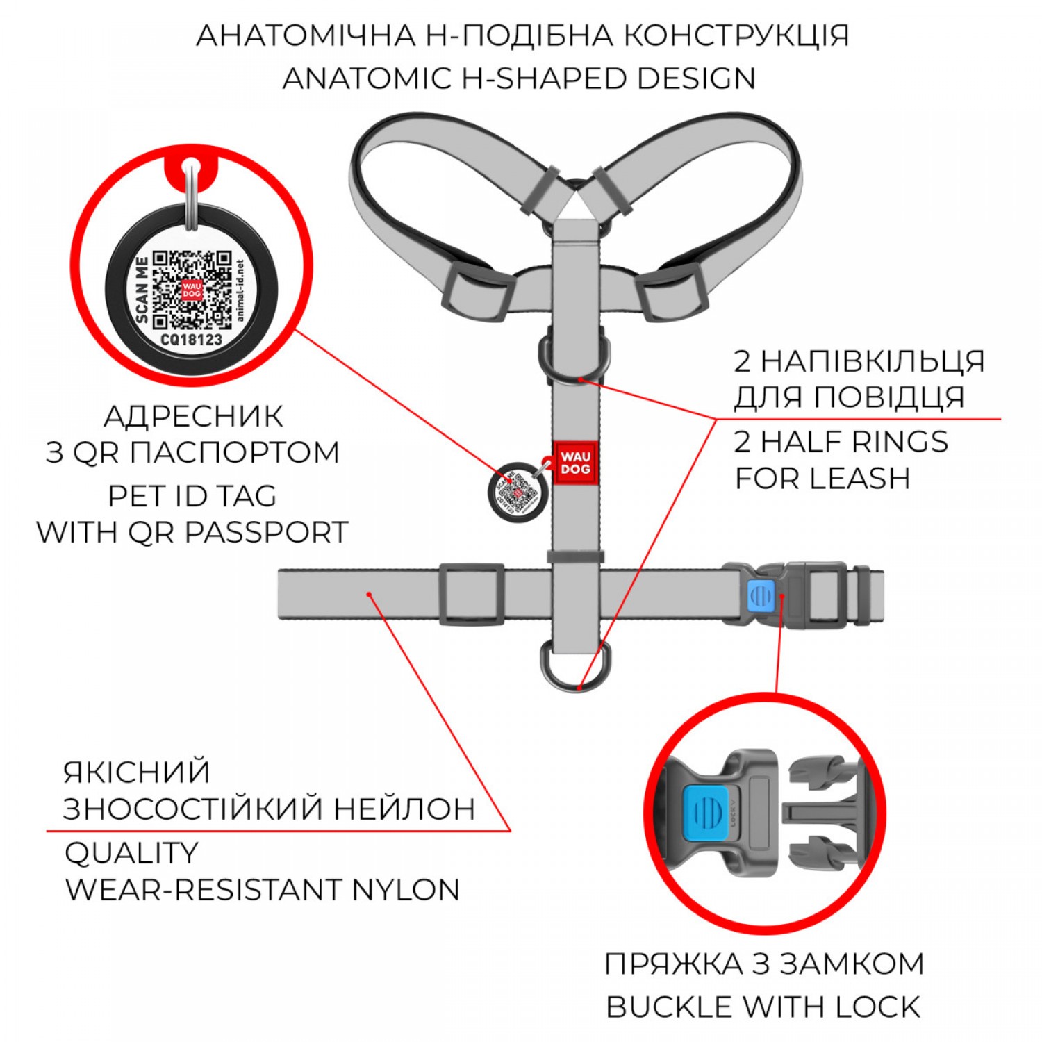 Collar WAUDOG Nylon H-образная шлея "Милитари" c QR-паспортом для собак.