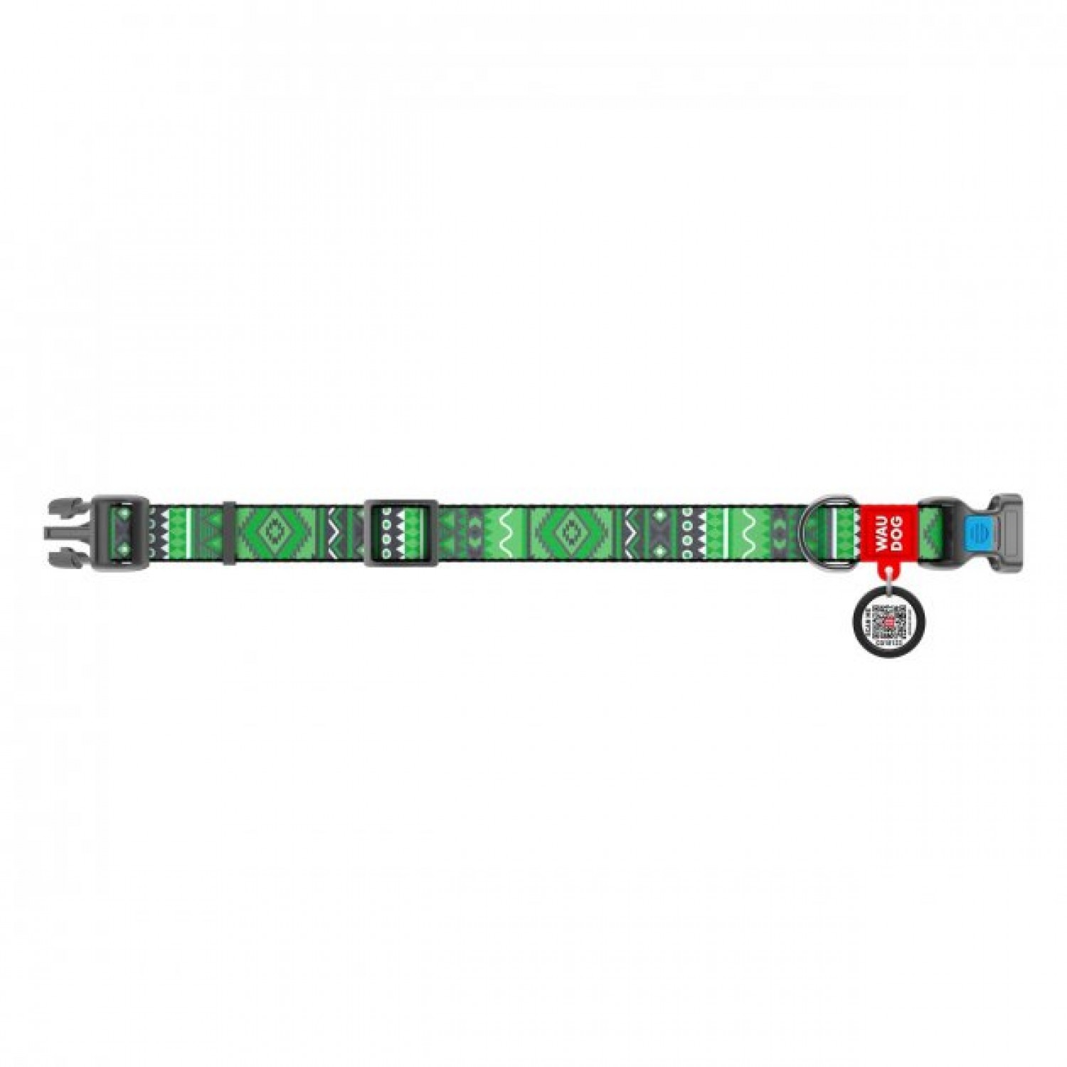 Collar WAUDOG Nylon нейлоновый ошейник "Этно зеленый" c QR паспортом для собак.