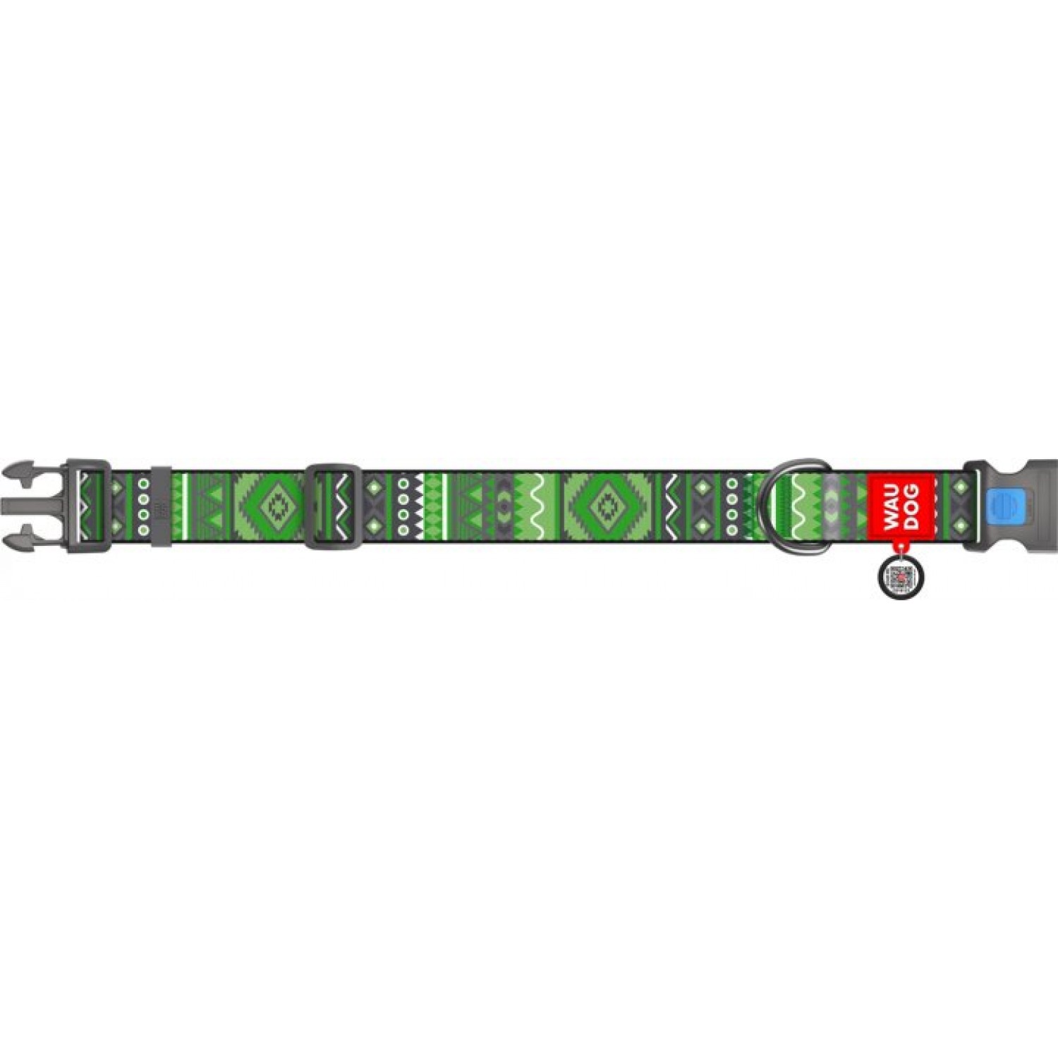 Collar WAUDOG Nylon нейлоновый ошейник "Этно зеленый" c QR паспортом для собак.