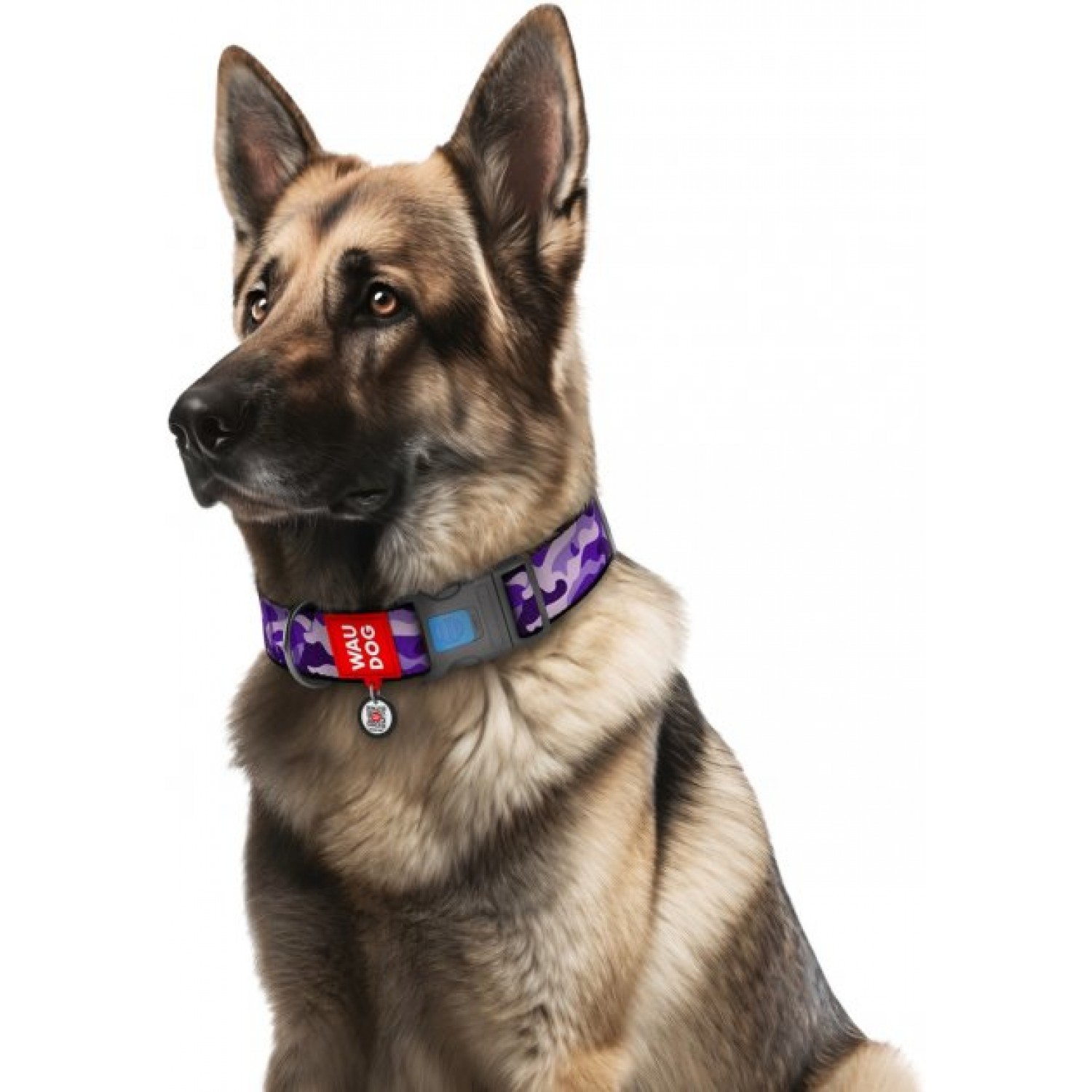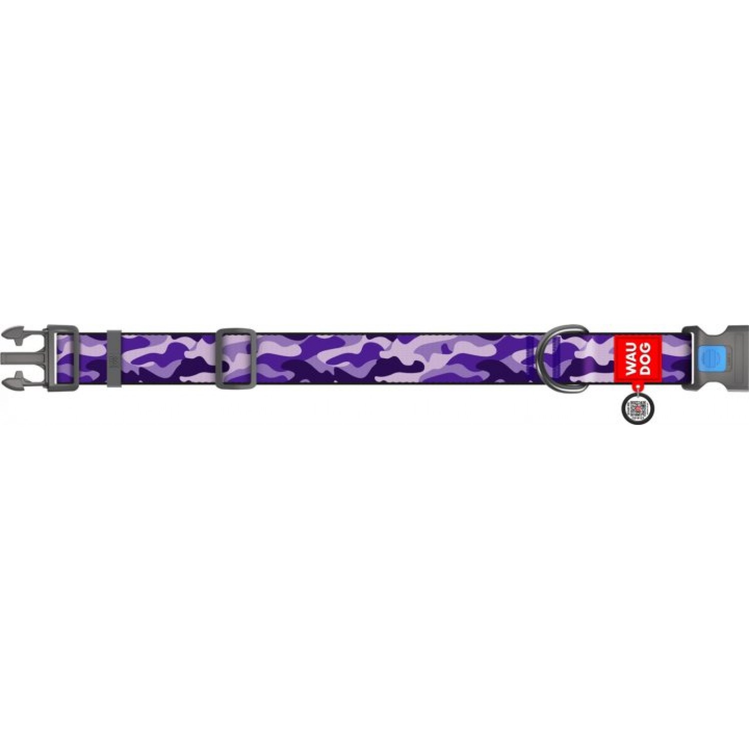 Collar WAUDOG Nylon нейлоновый ошейник "Фиолетовый камо" c QR паспортом для собак.