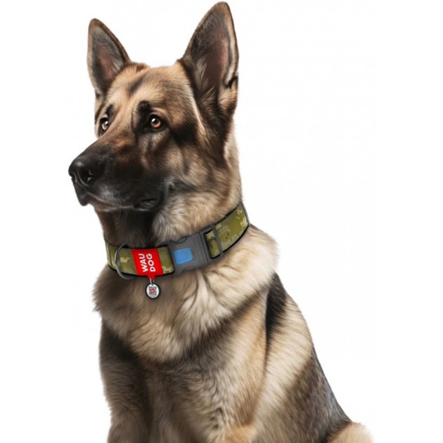 Collar WAUDOG Nylon нейлоновый ошейник "Милитари" c QR паспортом для собак.