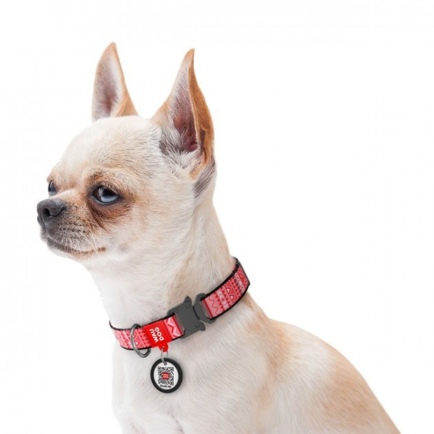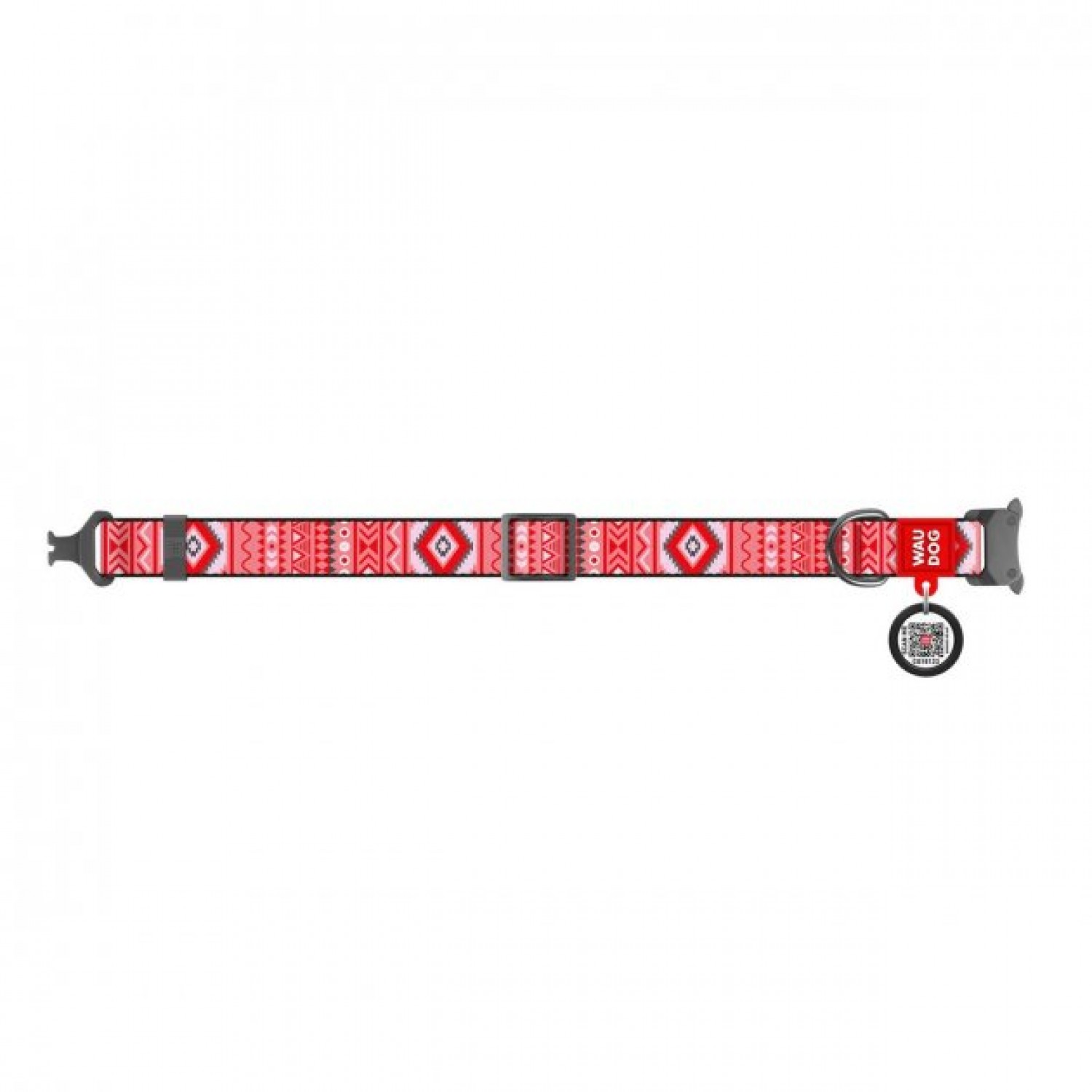 Collar WAUDOG Nylon нейлоновый ошейник "Этно красный" c QR паспортом и металлической фурнитурой для собак.