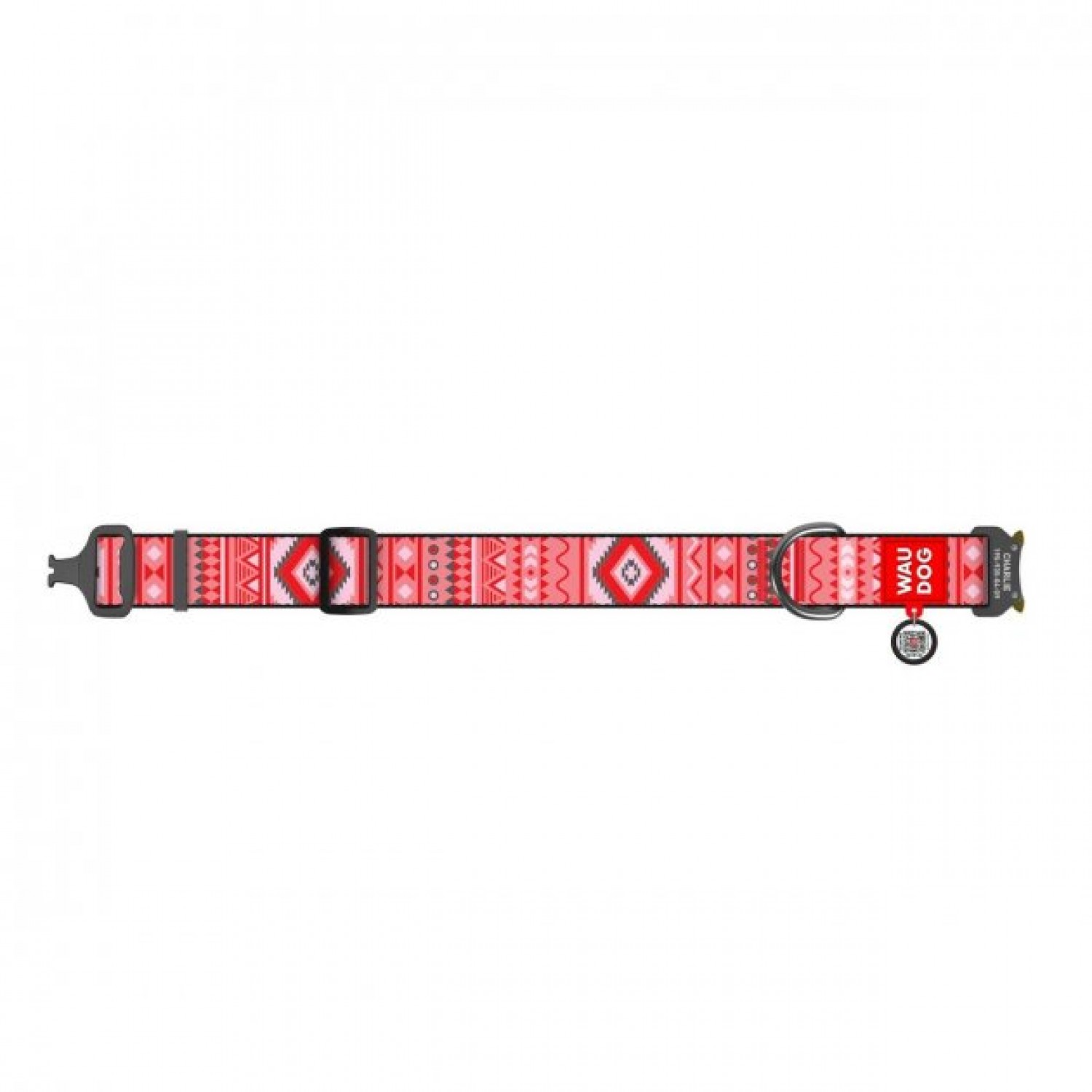 Collar WAUDOG Nylon нейлоновый ошейник "Этно красный" c QR паспортом и металлической фурнитурой для собак.