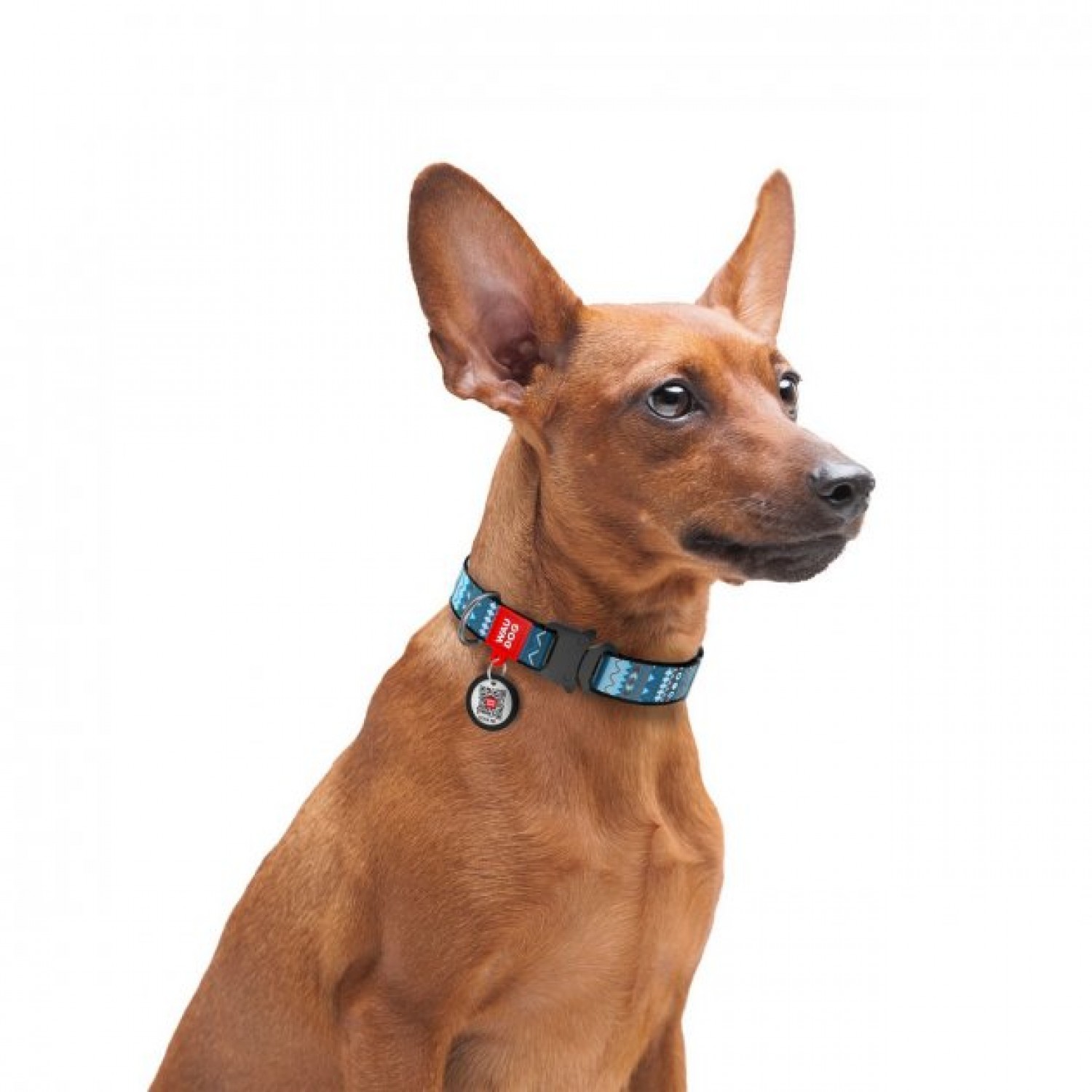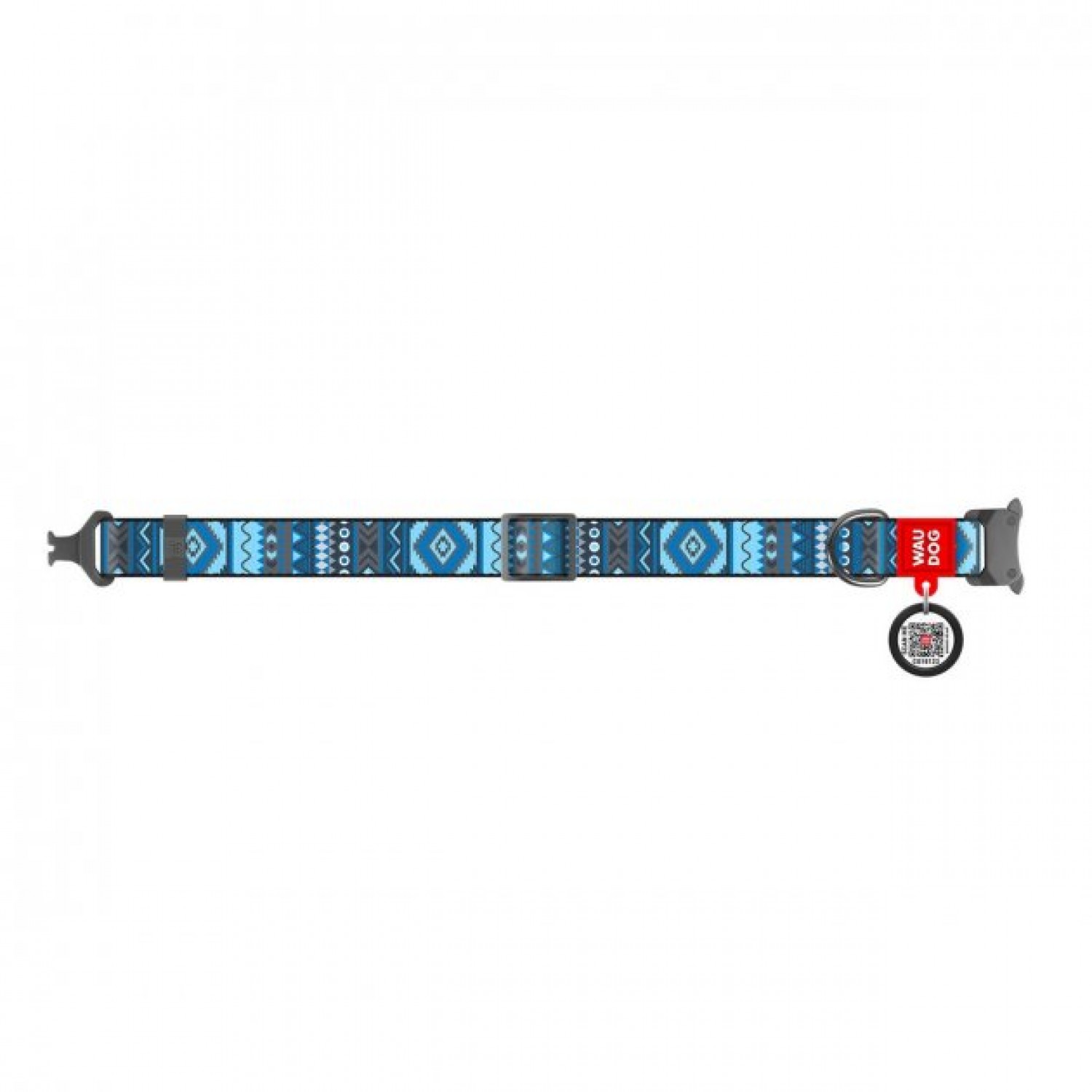 Collar WAUDOG Nylon нейлоновый ошейник "Этно синий" c QR паспортом и металлической фурнитурой для собак.