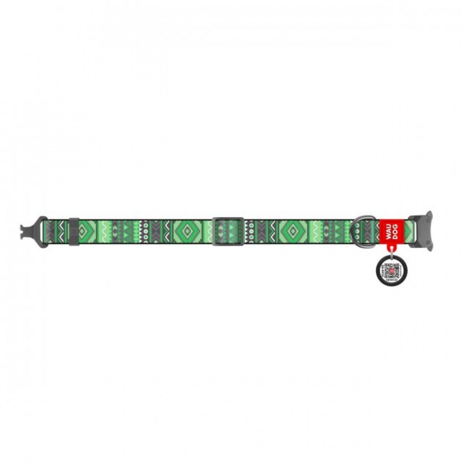 Collar WAUDOG Nylon нейлоновый ошейник "Этно зеленый" c QR паспортом и металлической фурнитурой для собак.
