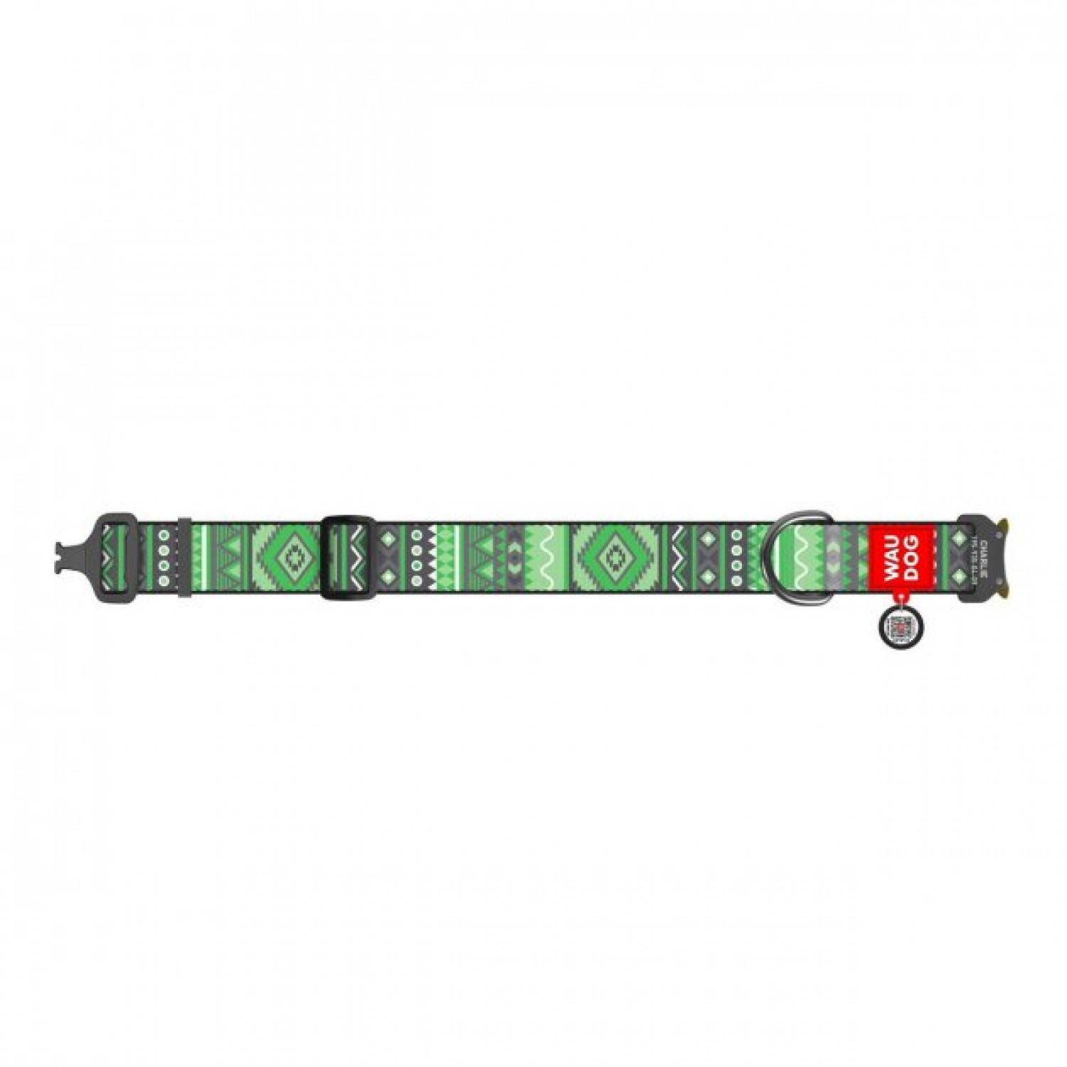 Collar WAUDOG Nylon нейлоновый ошейник "Этно зеленый" c QR паспортом и металлической фурнитурой для собак.
