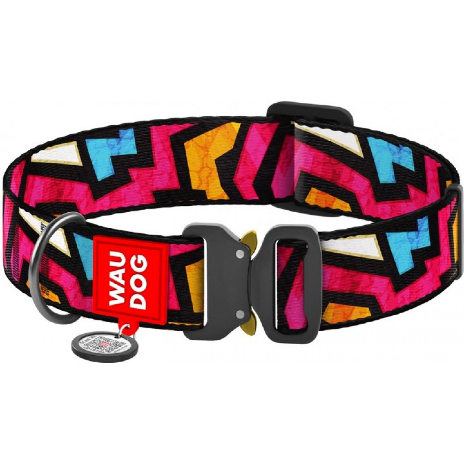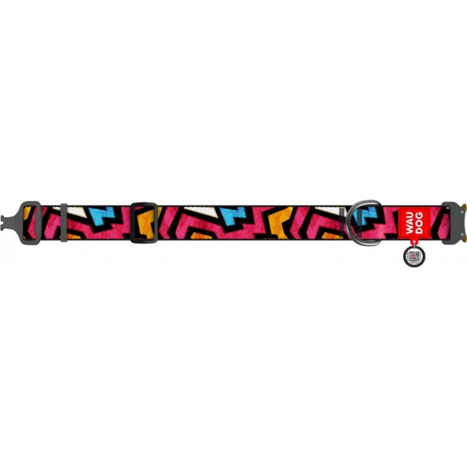 Collar WAUDOG Nylon нейлоновый ошейник "Граффити" c QR паспортом и металлической фурнитурой для собак.
