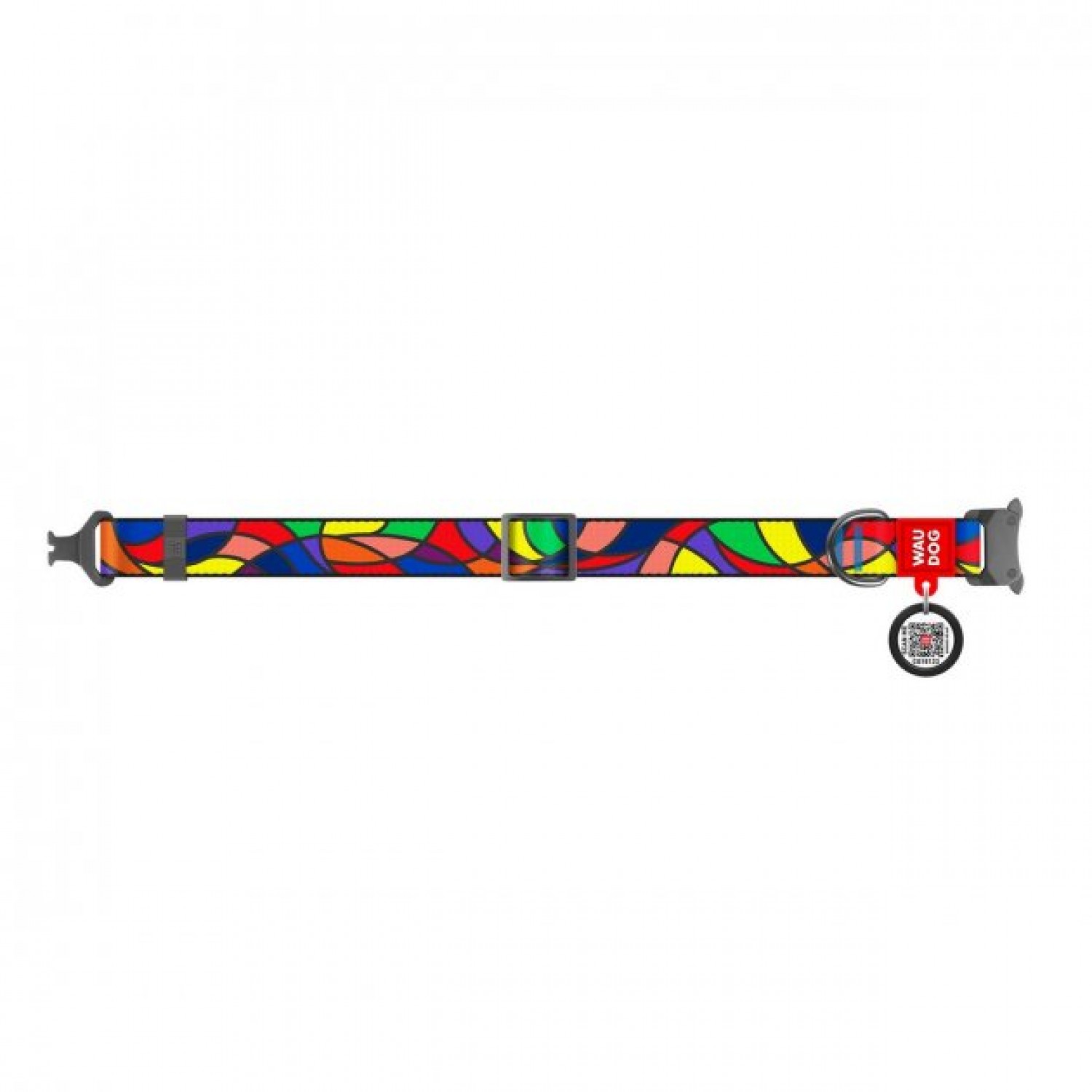 Collar WAUDOG Nylon нейлоновый ошейник "Витраж" c QR паспортом и металлической фурнитурой для собак.
