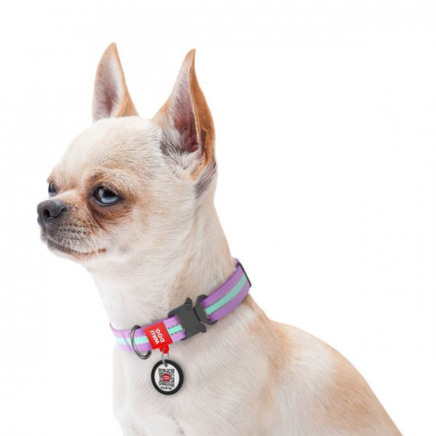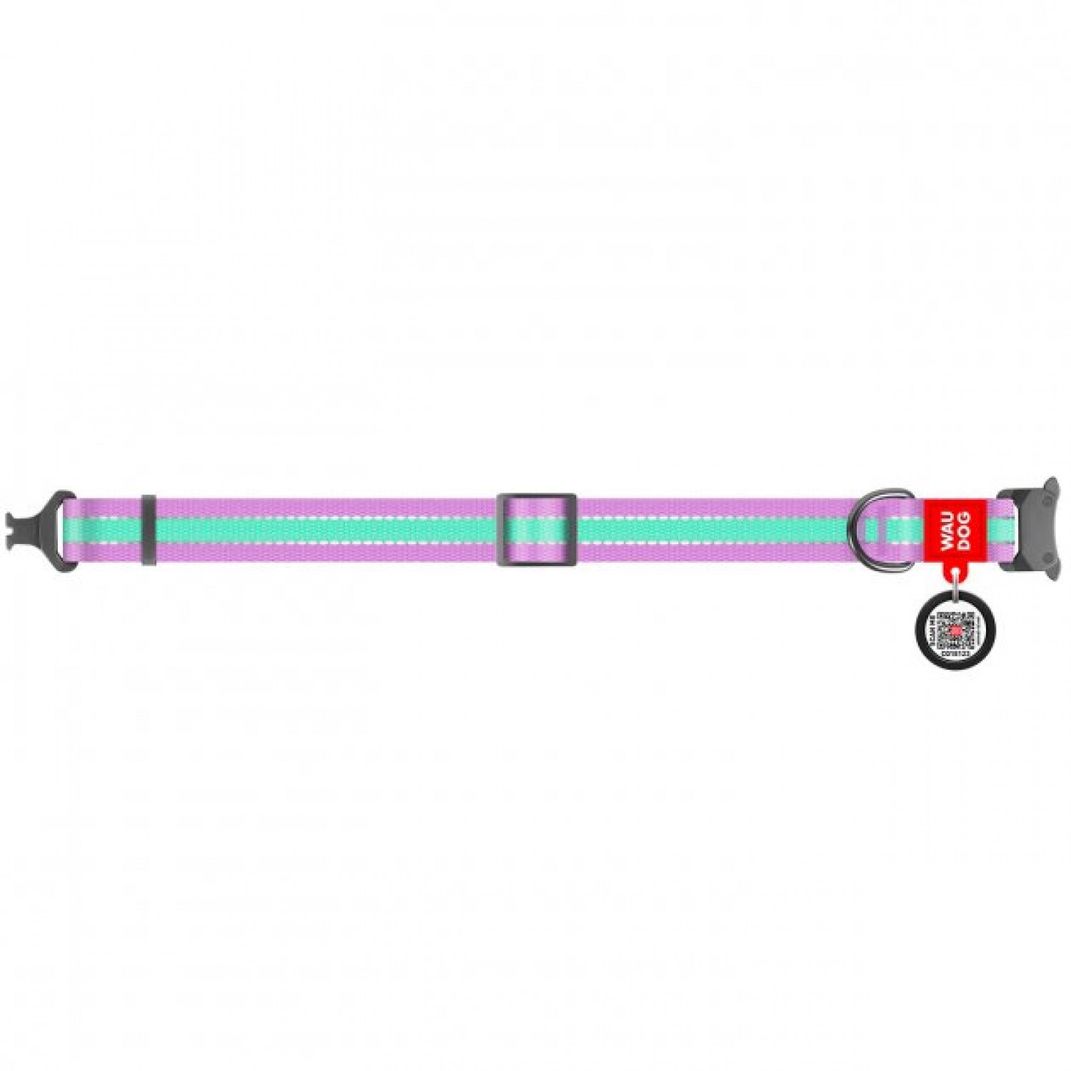 Collar WAUDOG Nylon светящийся/светоотражающий ошейник c QR паспортом и металлической фурнитурой для собак (фиолетовый).