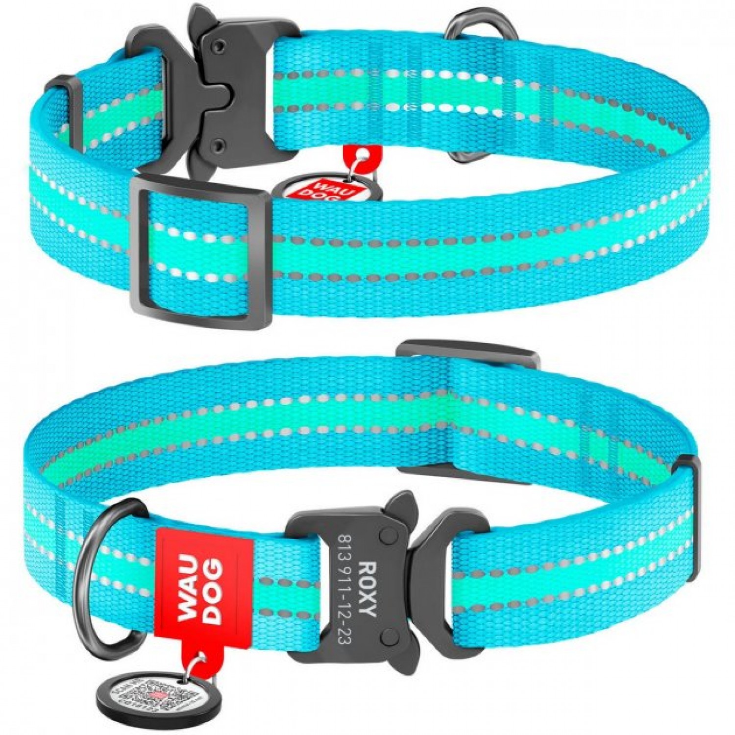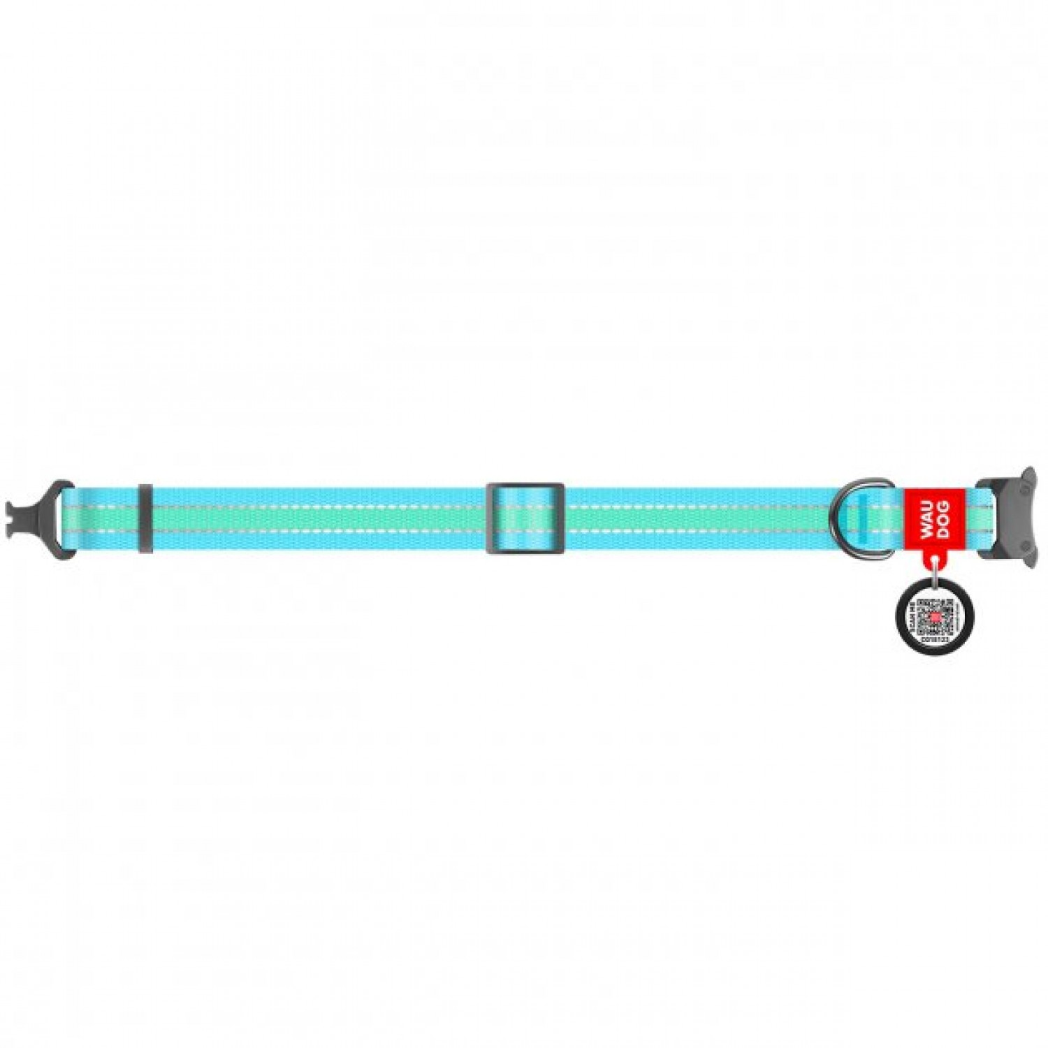 Collar WAUDOG Nylon светящийся/светоотражающий ошейник c QR паспортом и металлической фурнитурой для собак (голубой).